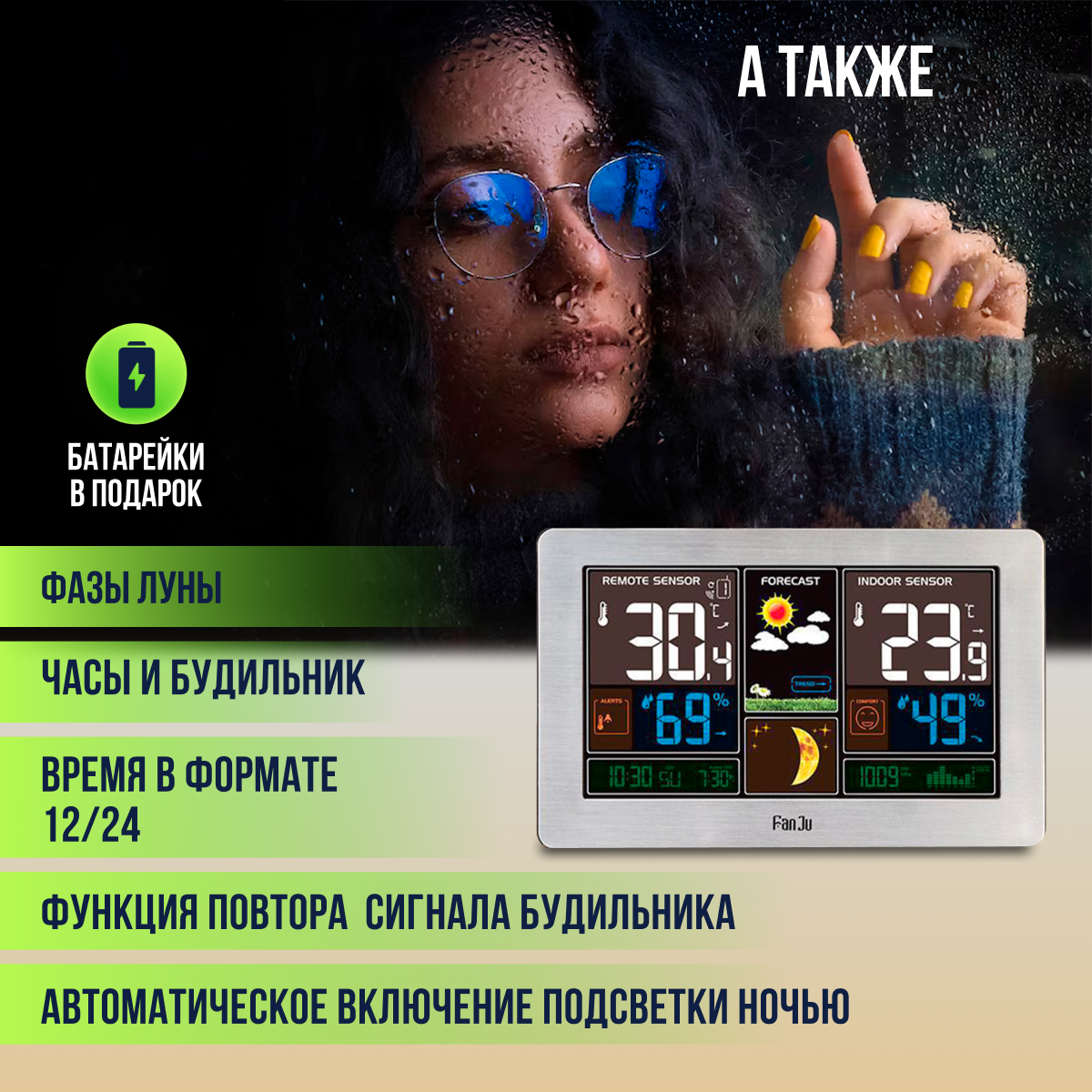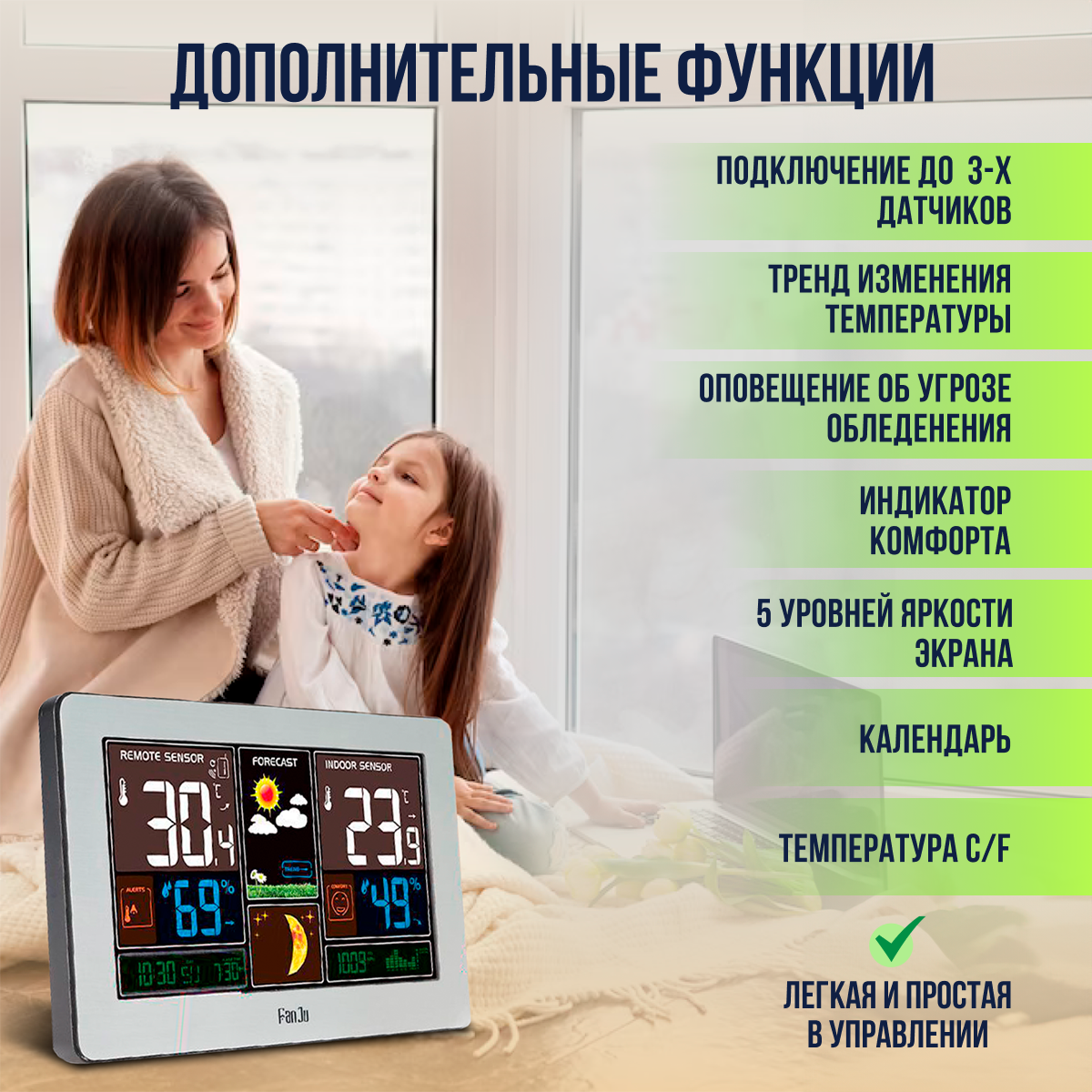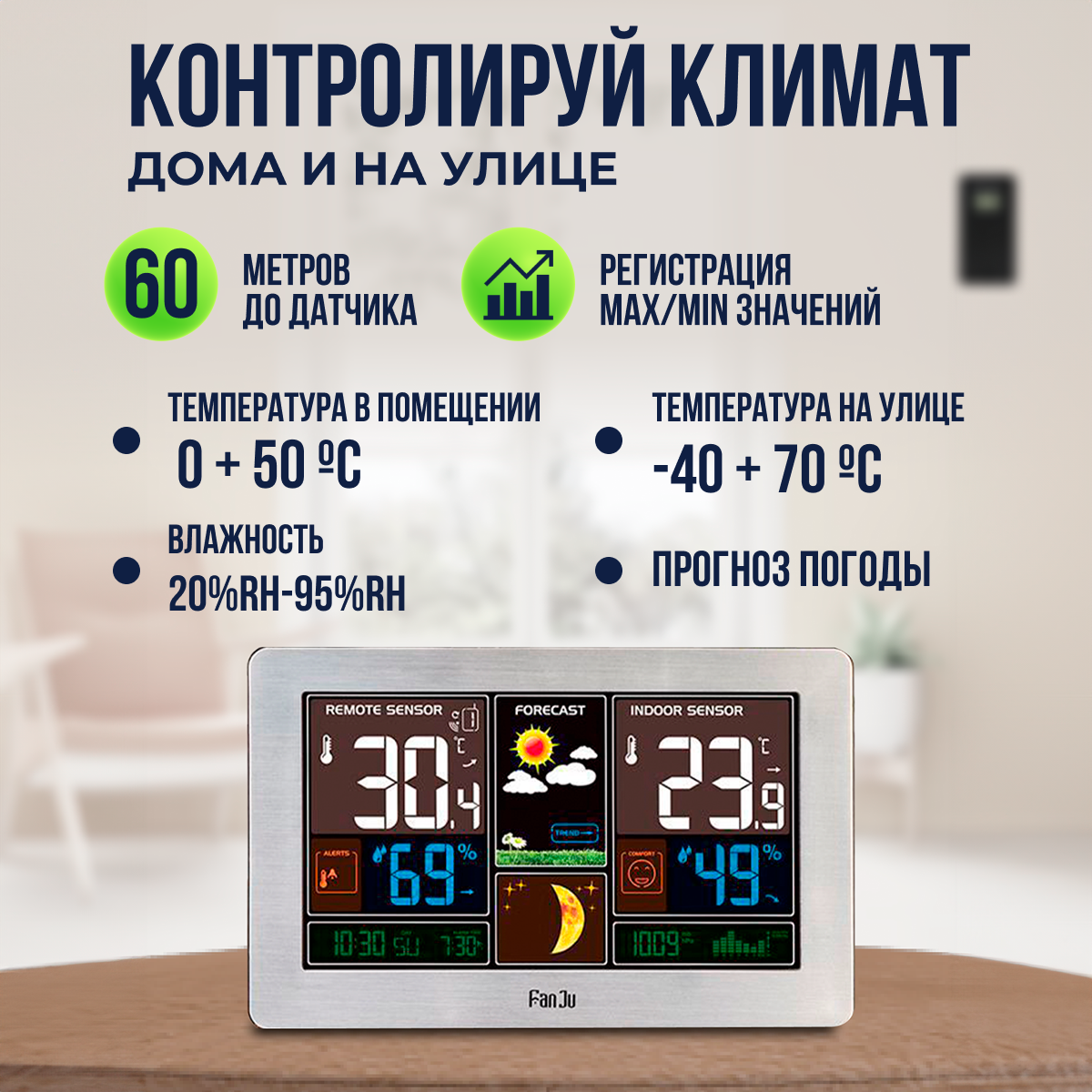 Домашняя метеостанция FanJu с беспроводным выносным датчиком