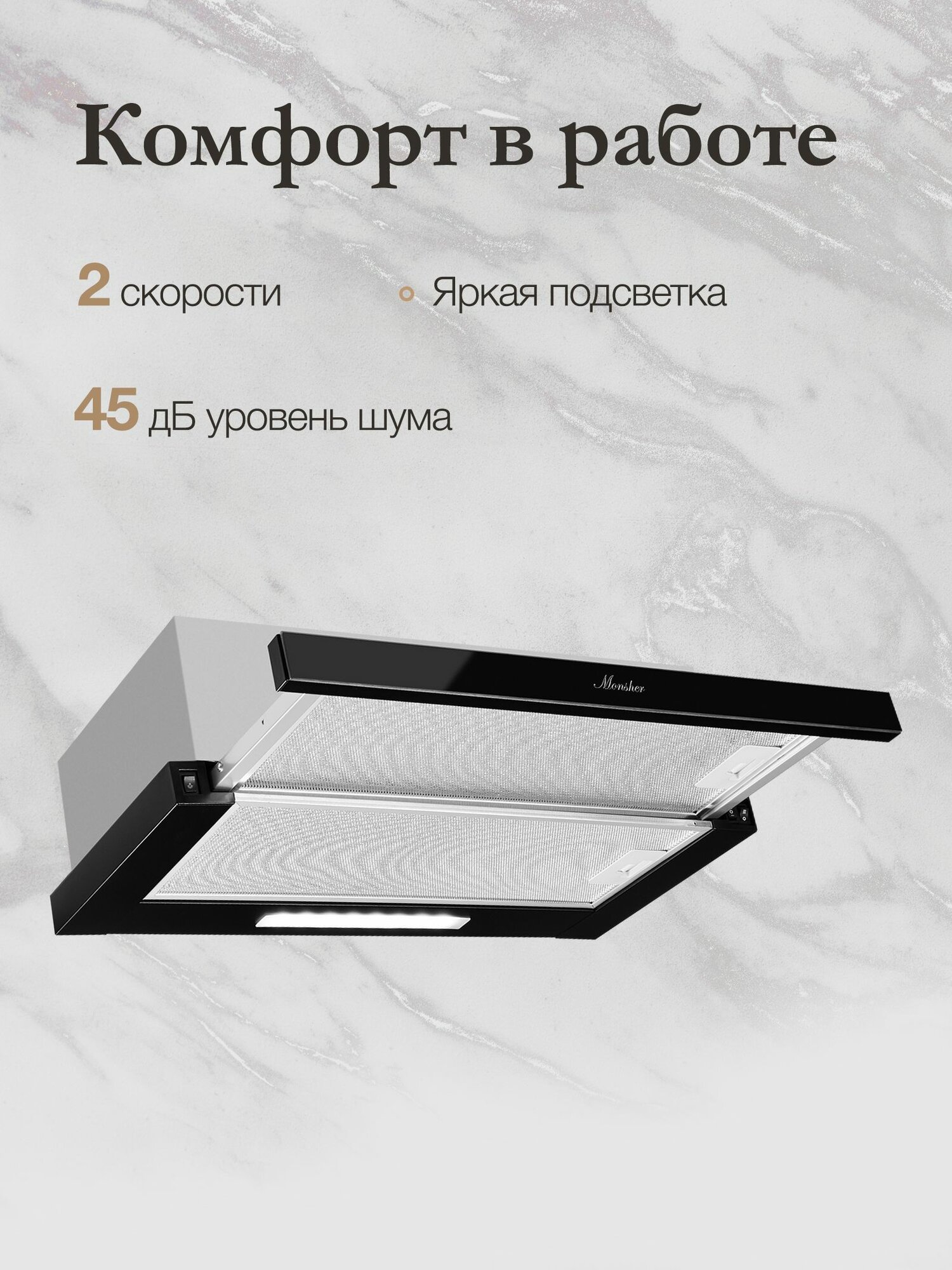 Вытяжка встраиваемая MONSHER LAUTREC 60 Noir Verre (Модификация 2024 года)