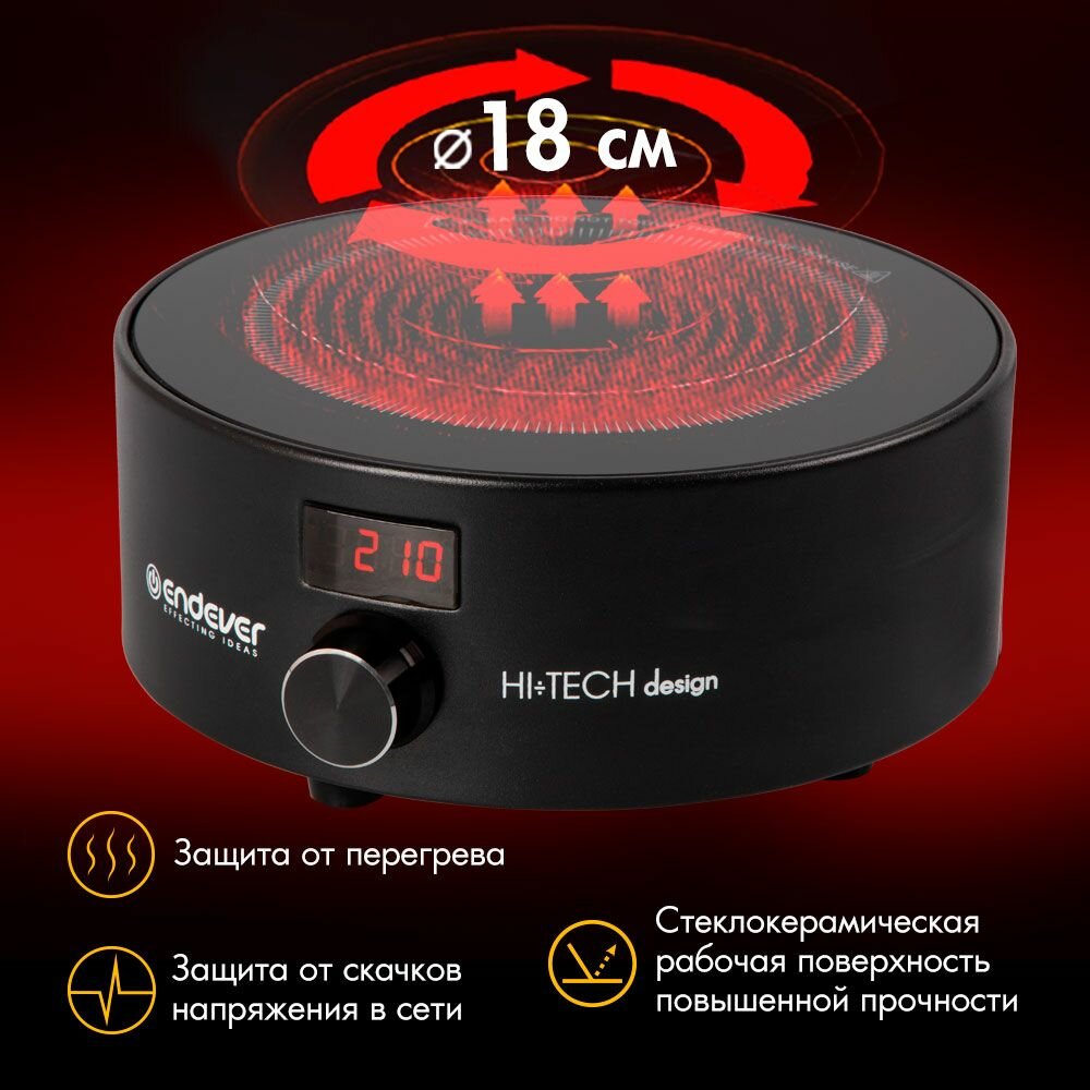 10 цен на Плита электрическая настольная Endever DP-45, 1500 Вт, до 10 кг, до 600 градусов, 7 программ, подходит любая посуда