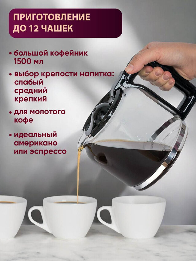 Капельная кофемашина Pioneer CM050D, LED дисплей, 3 уровня крепости кофе, система капля-стоп и отложенный старт, 900 Вт информация: