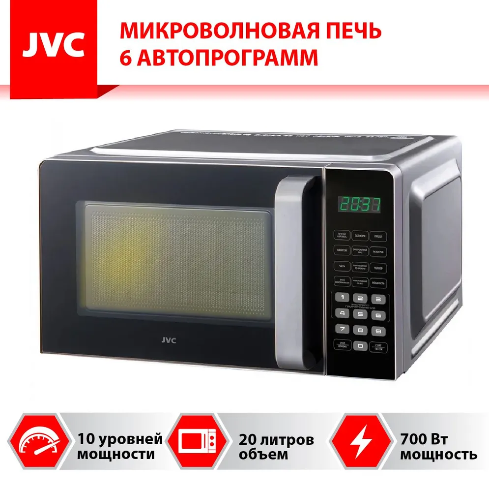 Микроволновая печь JVC JK-MW370S / 20 литров, сенсор, 6 автопрограмм, 10 уровней мощности, 2 года гарантии, 700 Вт информация: