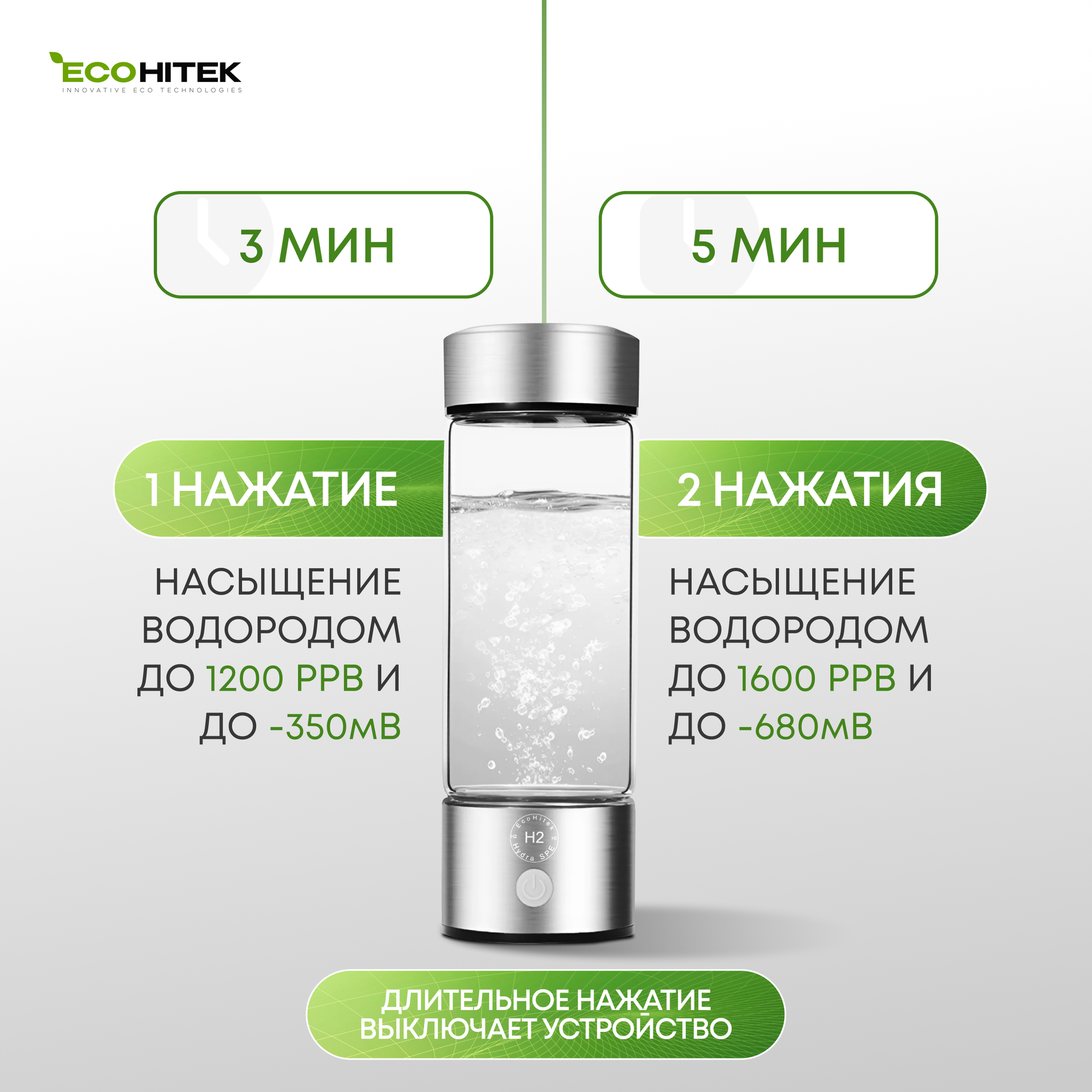 Новое поколение Hydra, меняет pH и ОВП, водородная бутылка от EcoHitek, водородная бутылка с технологией SPE/PEM без хлора и озона, 420 мл информация: