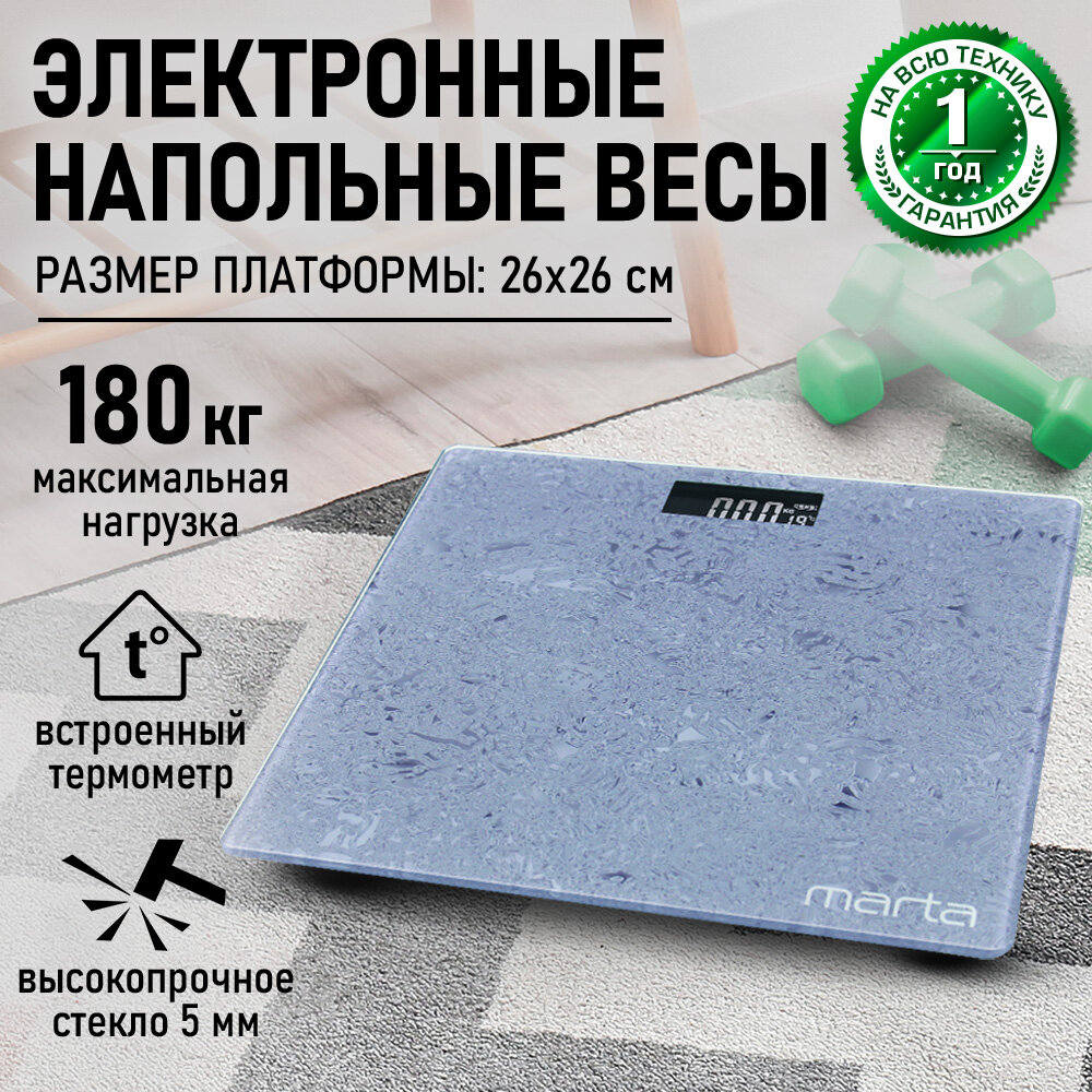 MARTA MT-SC3603 серый жемчуг весы напольные сенсор LED дисплей, встроенный термометр