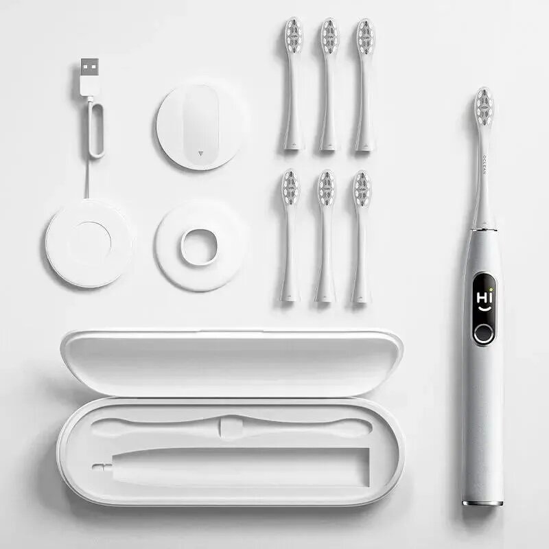10 цен на Звуковая зубная щетка Oclean X Pro Elite Premium Set, 7 насадок, футляр, цвет серый