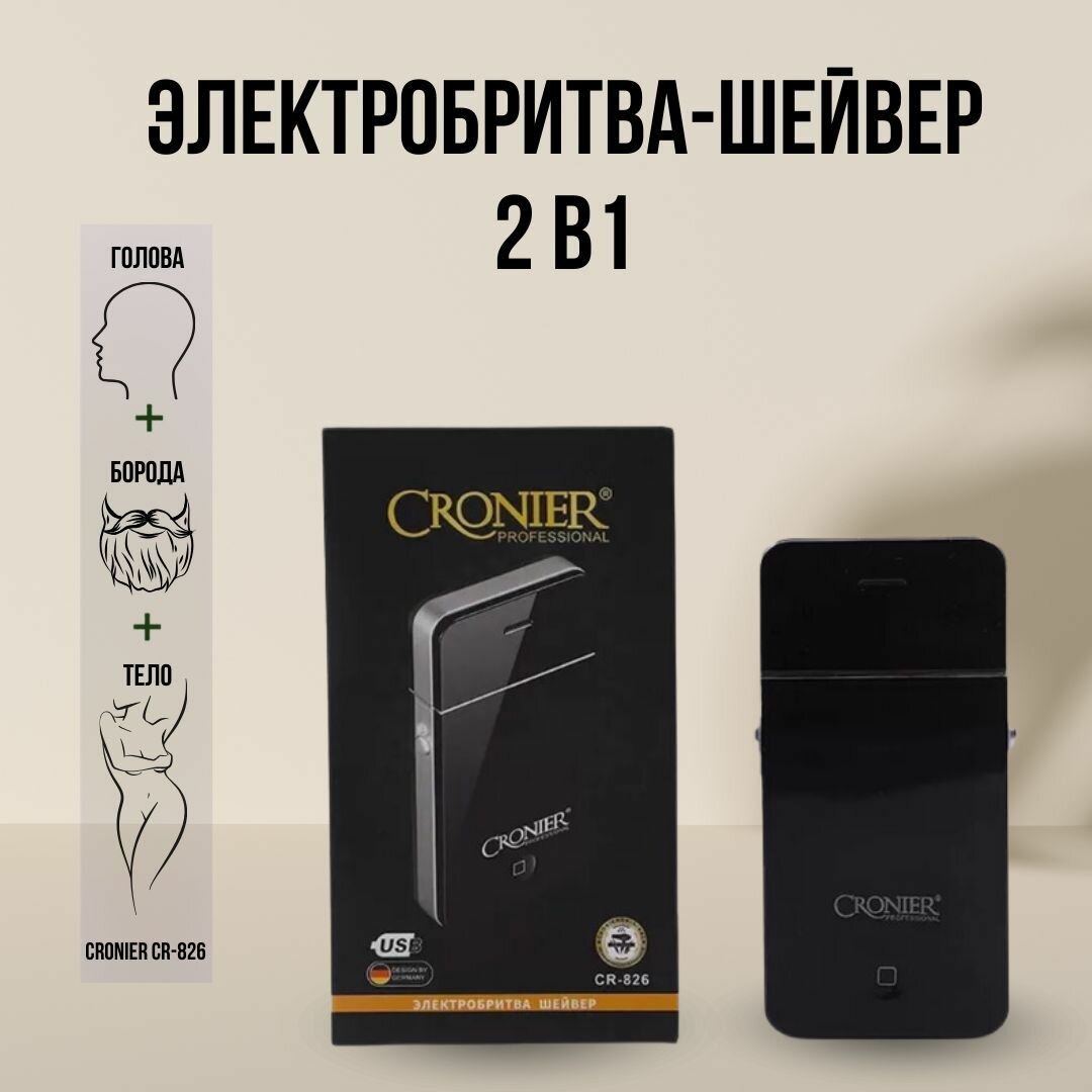 Электробритва шейвер PROFESSIONAL CRONIER CR-826, черный информация: