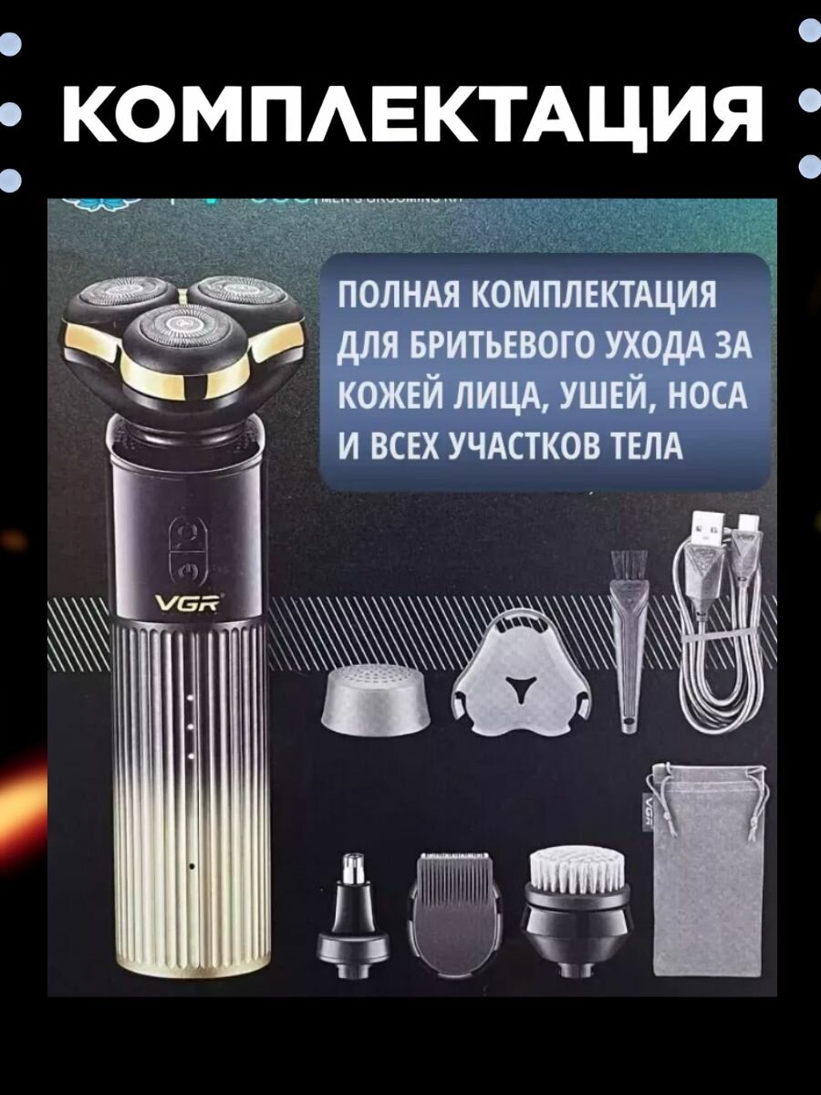 Электробритва "VGR V319" с быстрой зарядкой, защитой от воды и тремя плавающими головками