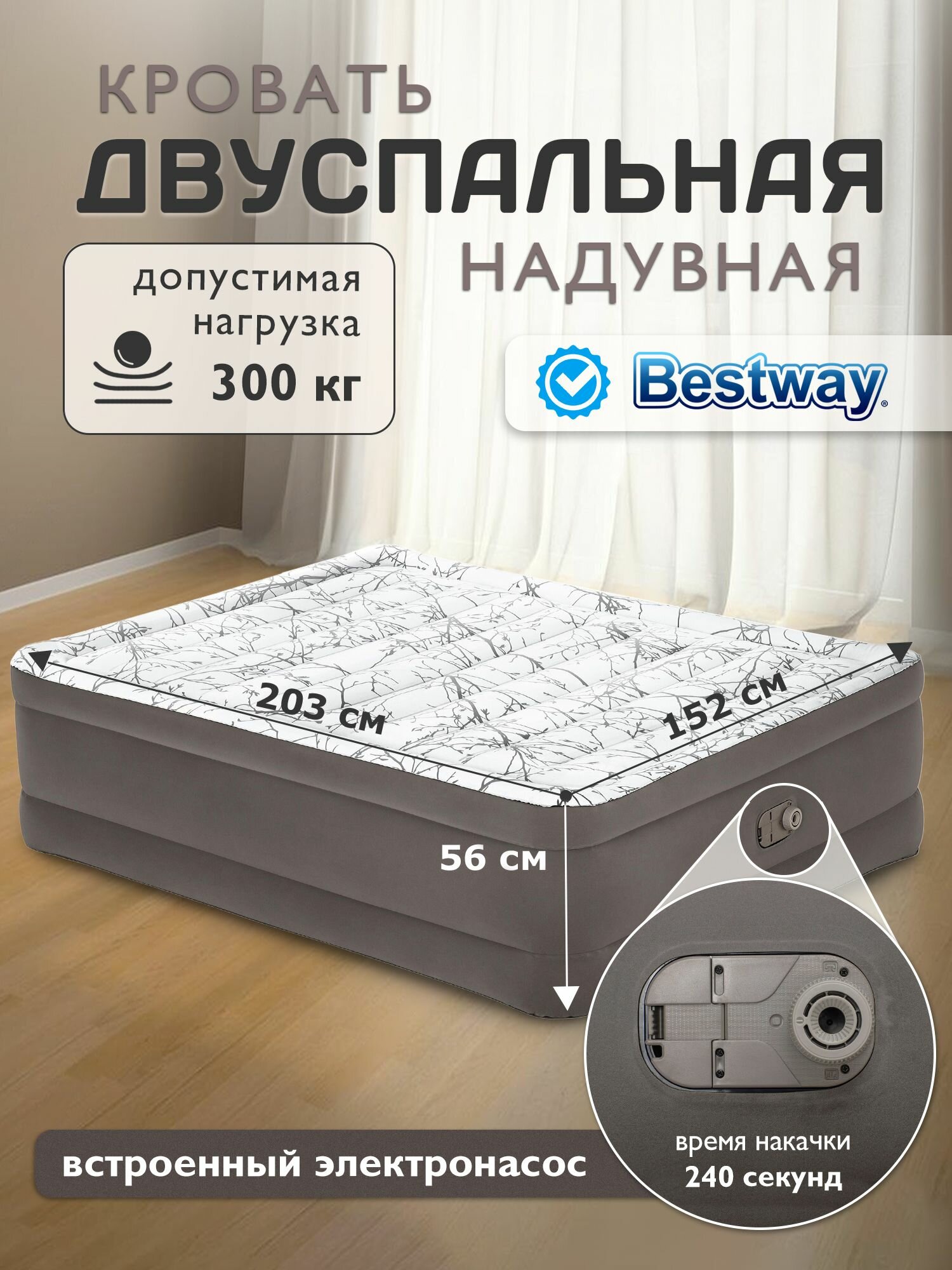 Кровать надувная двуспальная Bestway 152х203х56см / встроенный насос 220В 6713E информация: