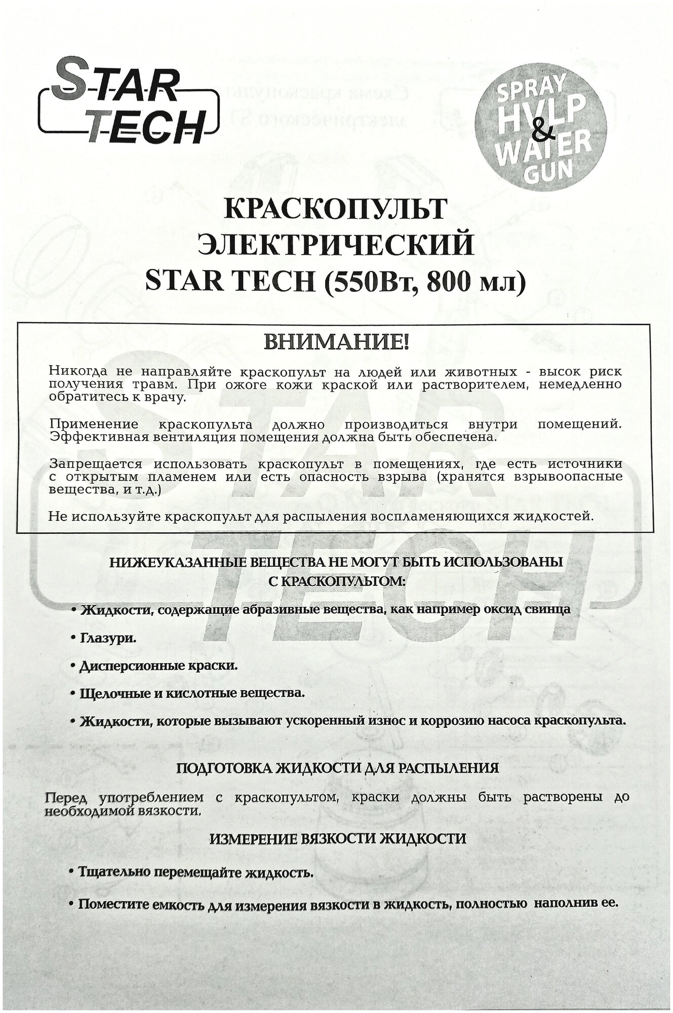 Краскопульт электро (сопло 1.8мм, 800 мл, 550 Вт, 100 мл/мин) StarTech, VR-2100 информация: