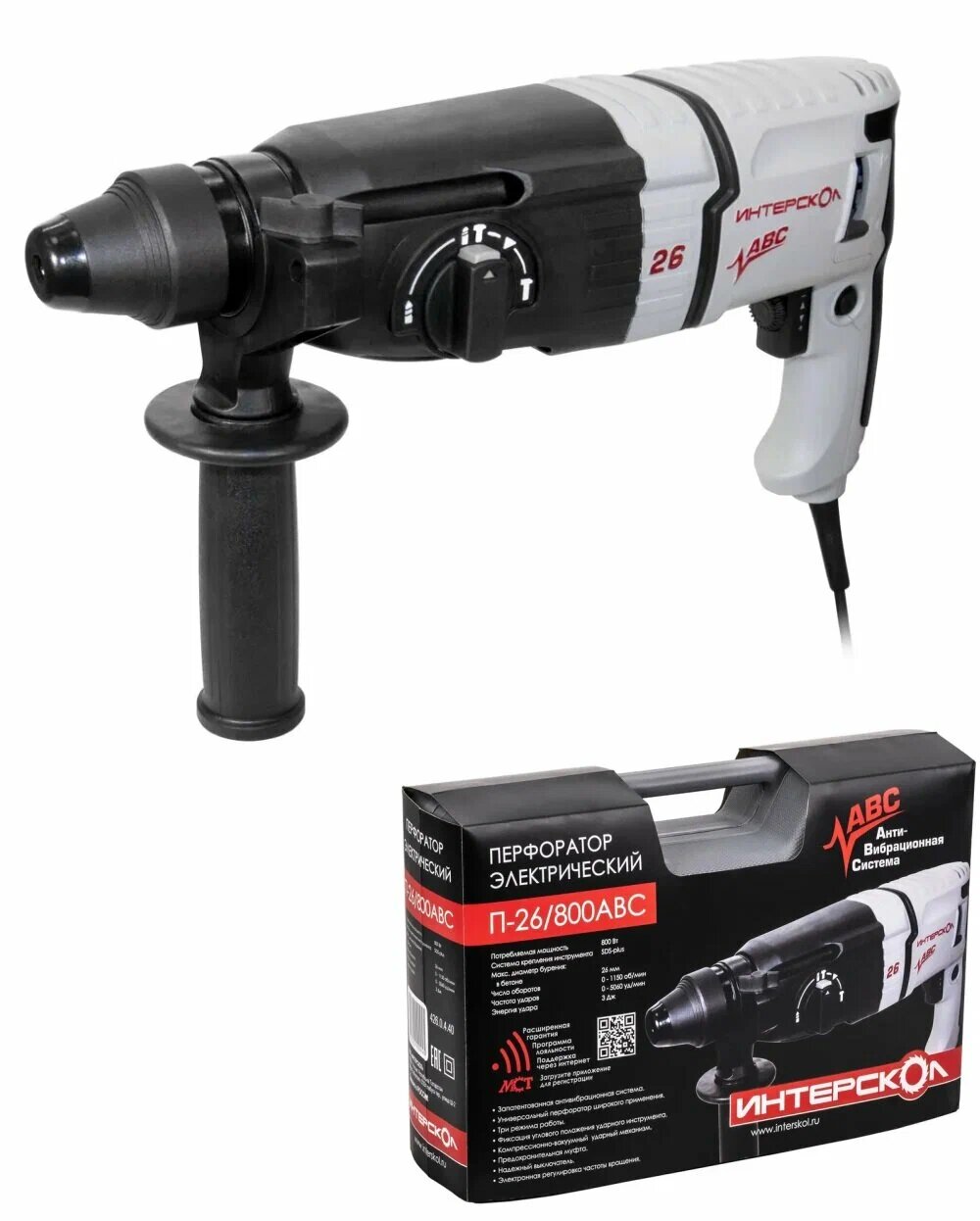 Трехрежимный перфоратор с антивибрацией ИНТЕРСКОЛ П-26/800АВС, 426.0.4.40 информация: