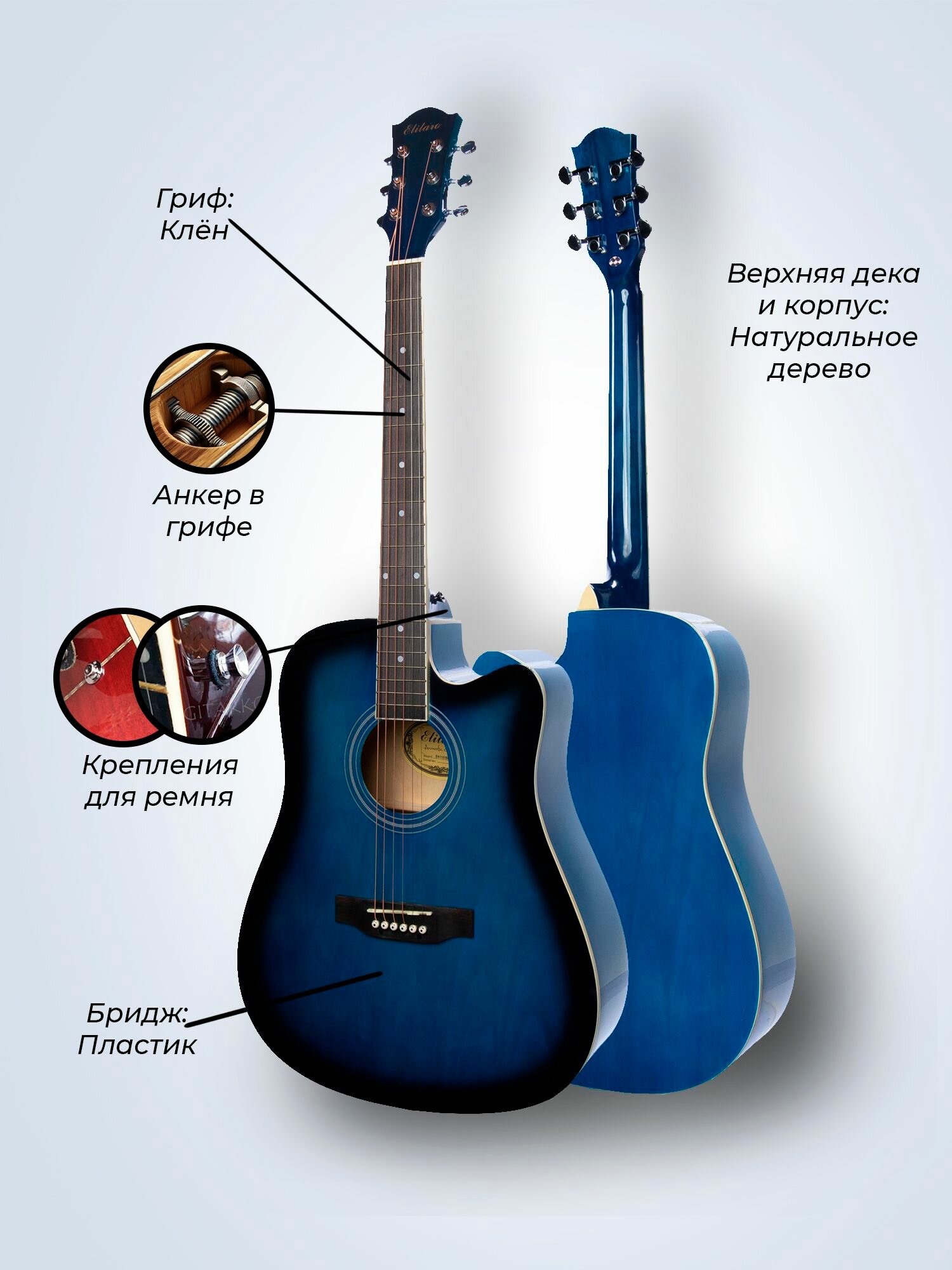 10 цен на Гитара акустическая 41" Синяя (Инструмент начинающего музыканта, Elitaro E4110 BLS)