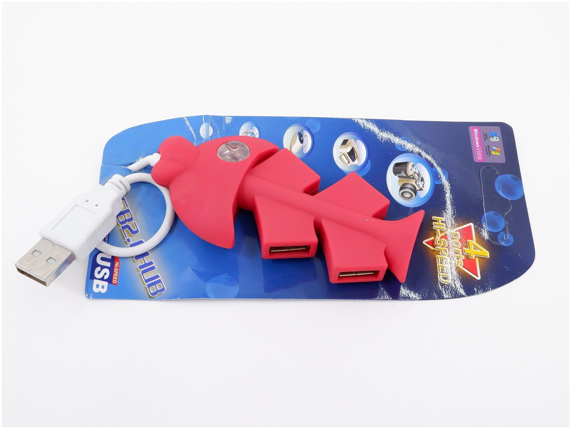 10 цен на USB-концентратор Рыбка, пассивный, 4 x USB-порта, цвет- красный