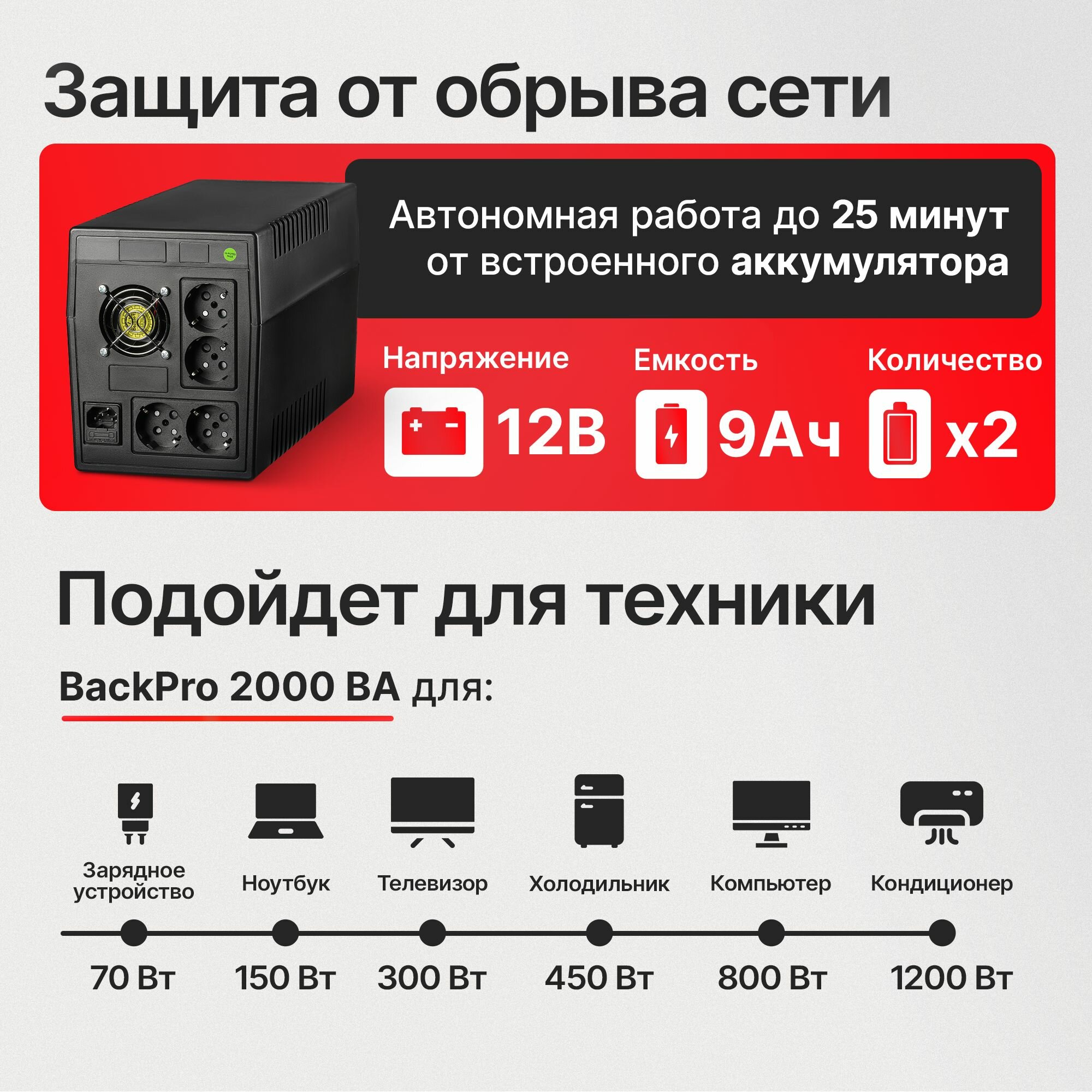 ИБП бесперебойник для компьютера, роутера Powerman UPS BackPro 2000/UPS+AVR информация: