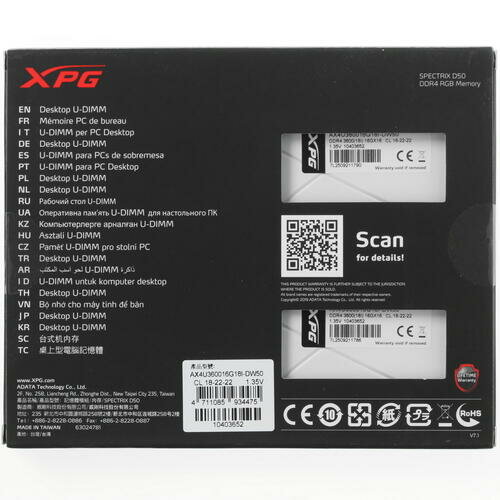 Оперативная память ADATA XPG SPECTRIX D50 RGB [AX4U360016G18I-DW50] 32 ГБ информация: