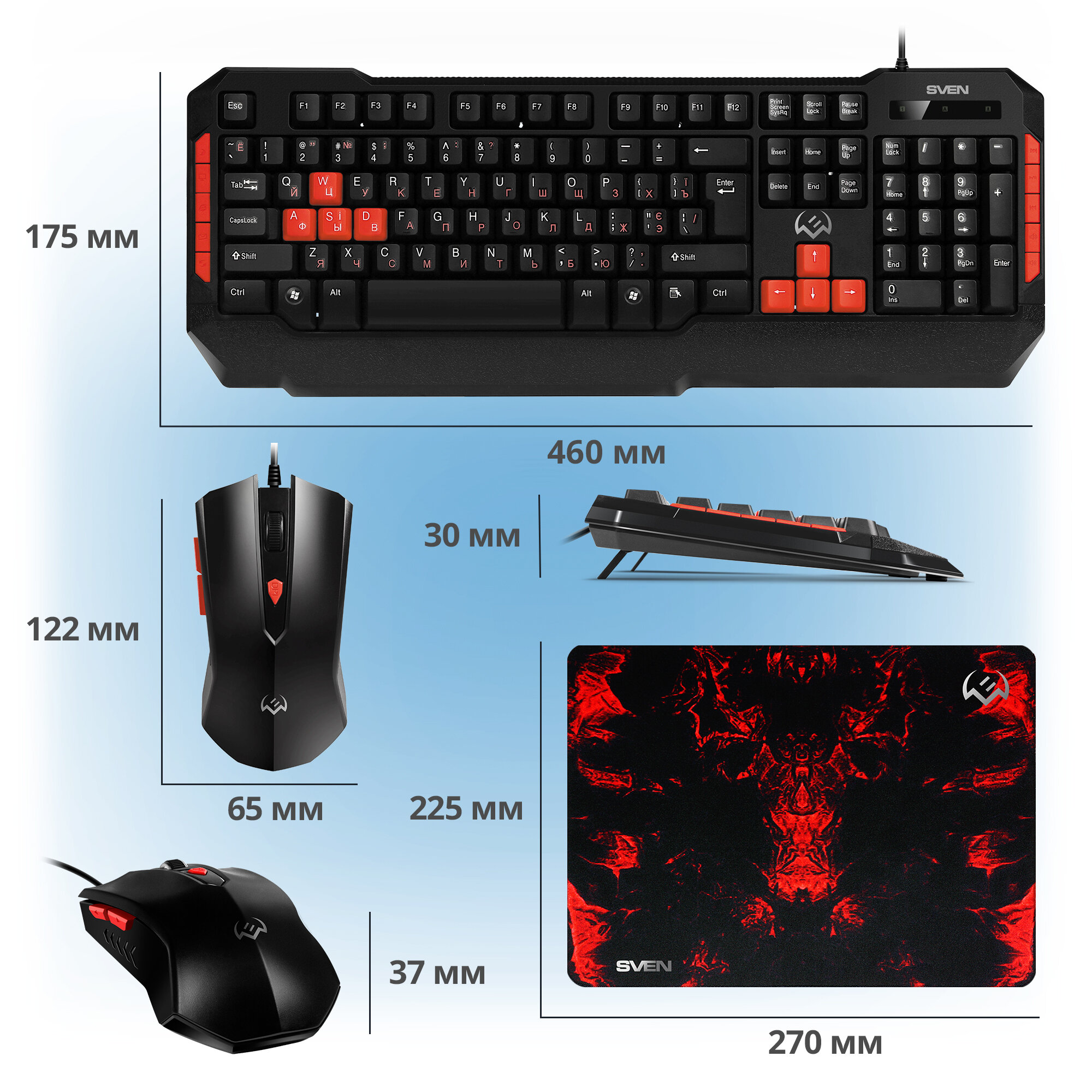 Игровой набор клавиатура+мышь+коврик GS-9000 (114кл.8 смен. кл, 600-1800DPI, 5+1кн.) информация: