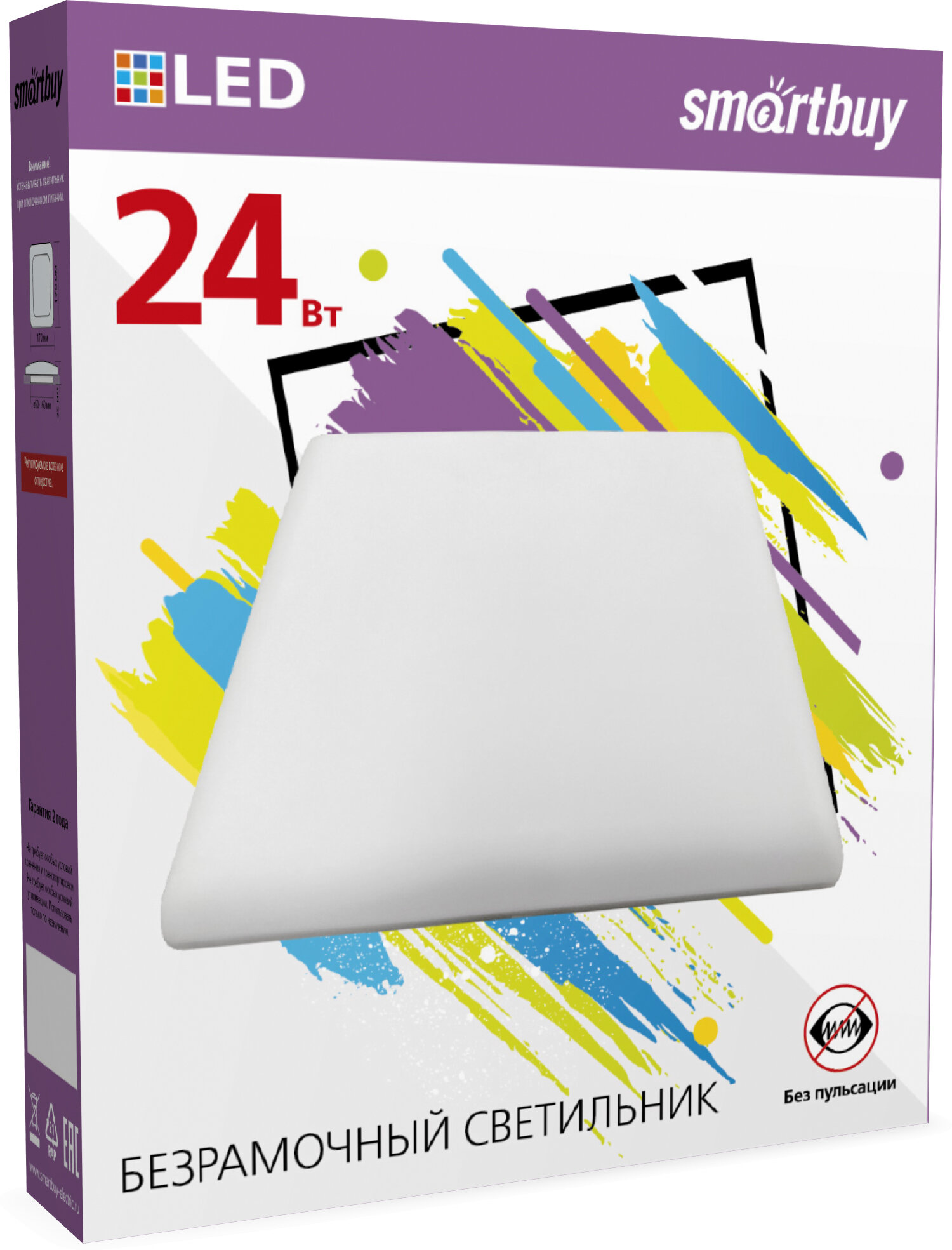 Светильник светодиодный безрамочный BDLS Smarbuy квадрат 24Вт/4000К (SBL-BDLS-24-4K) информация: