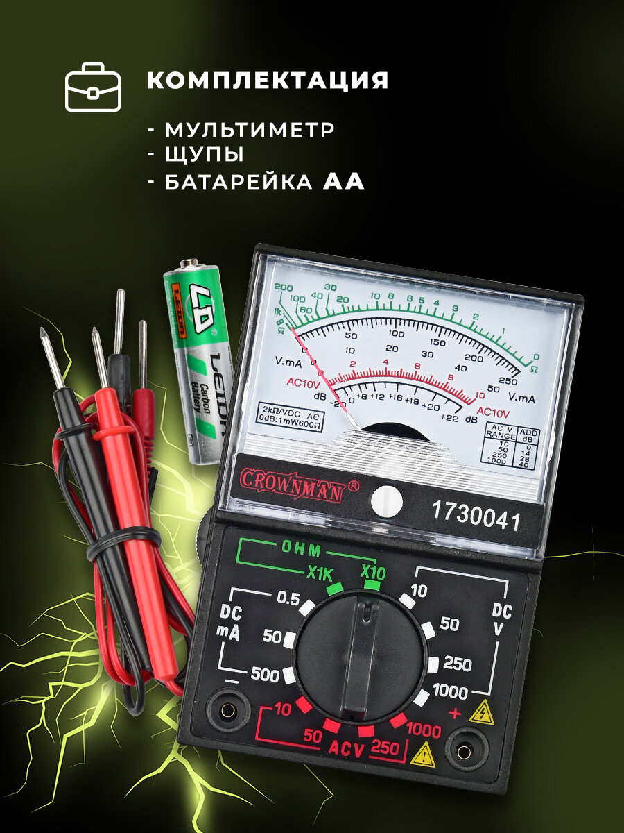 Мультиметр Crownman 1730041, аналоговый, измерение напряжения и тока информация: