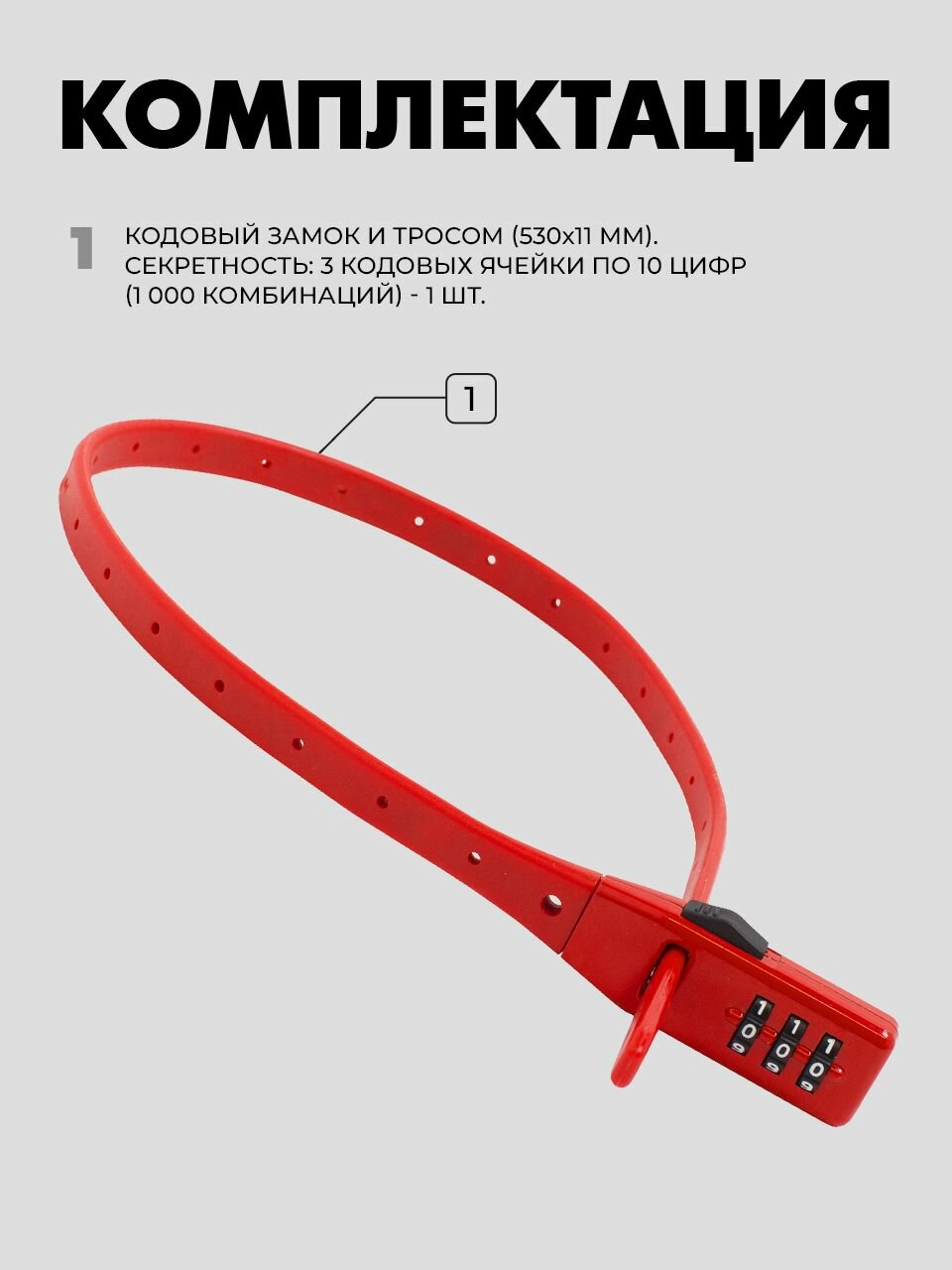 Замок кодовый для велосипеда с регулируемой длиной троса, 0,53 м, 11мм. Булат ВС 455 НС красный. информация: