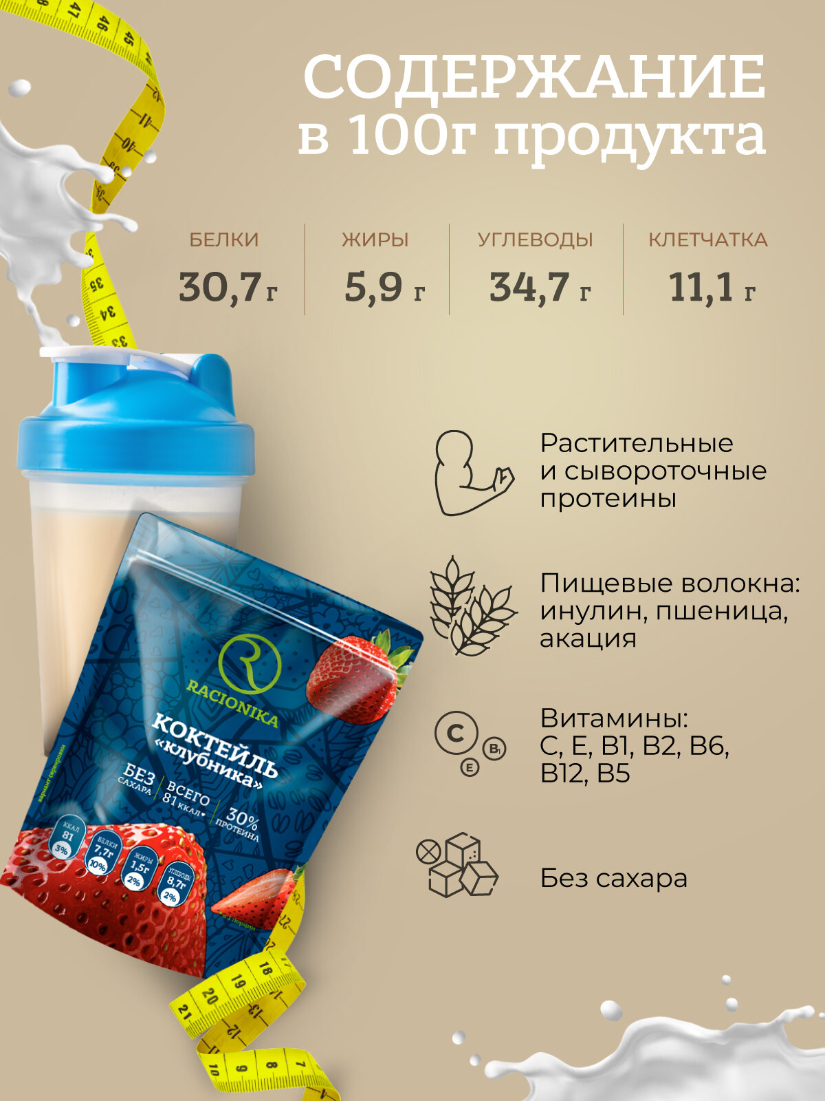 10 цен на Протеиновый коктейль для похудения Protein РАЦИОНИКА, без сахара, Клубника 275 г