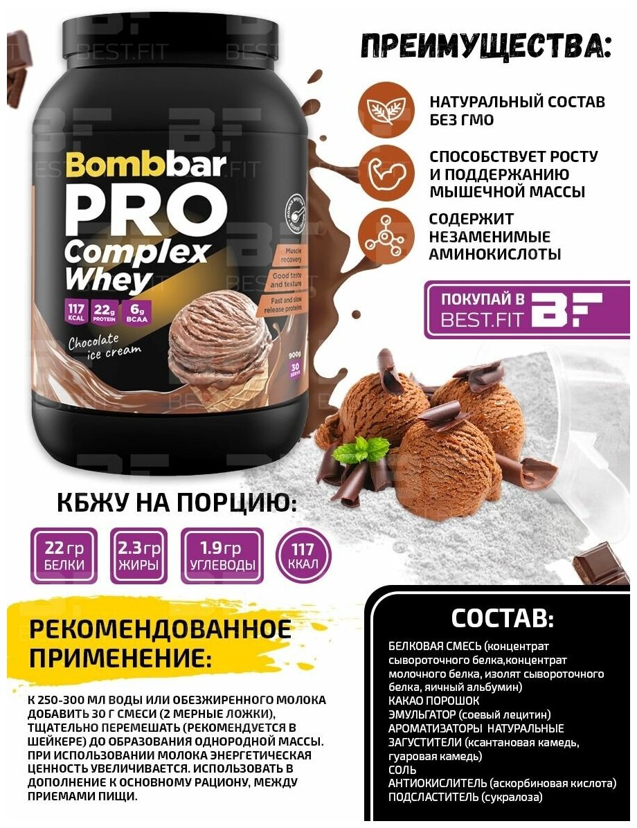 Протеин сывороточный BOMBBAR Pro Complex Whey, 900 г, вкус: шоколадный пломбир информация: