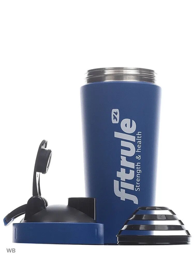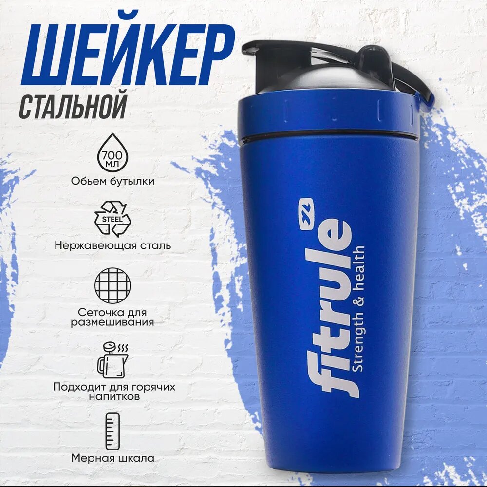 10 цен на Металлический шейкер для протеина с мерной шкалой и клапаном для защиты от протекания FitRule 700 мл (Синий)