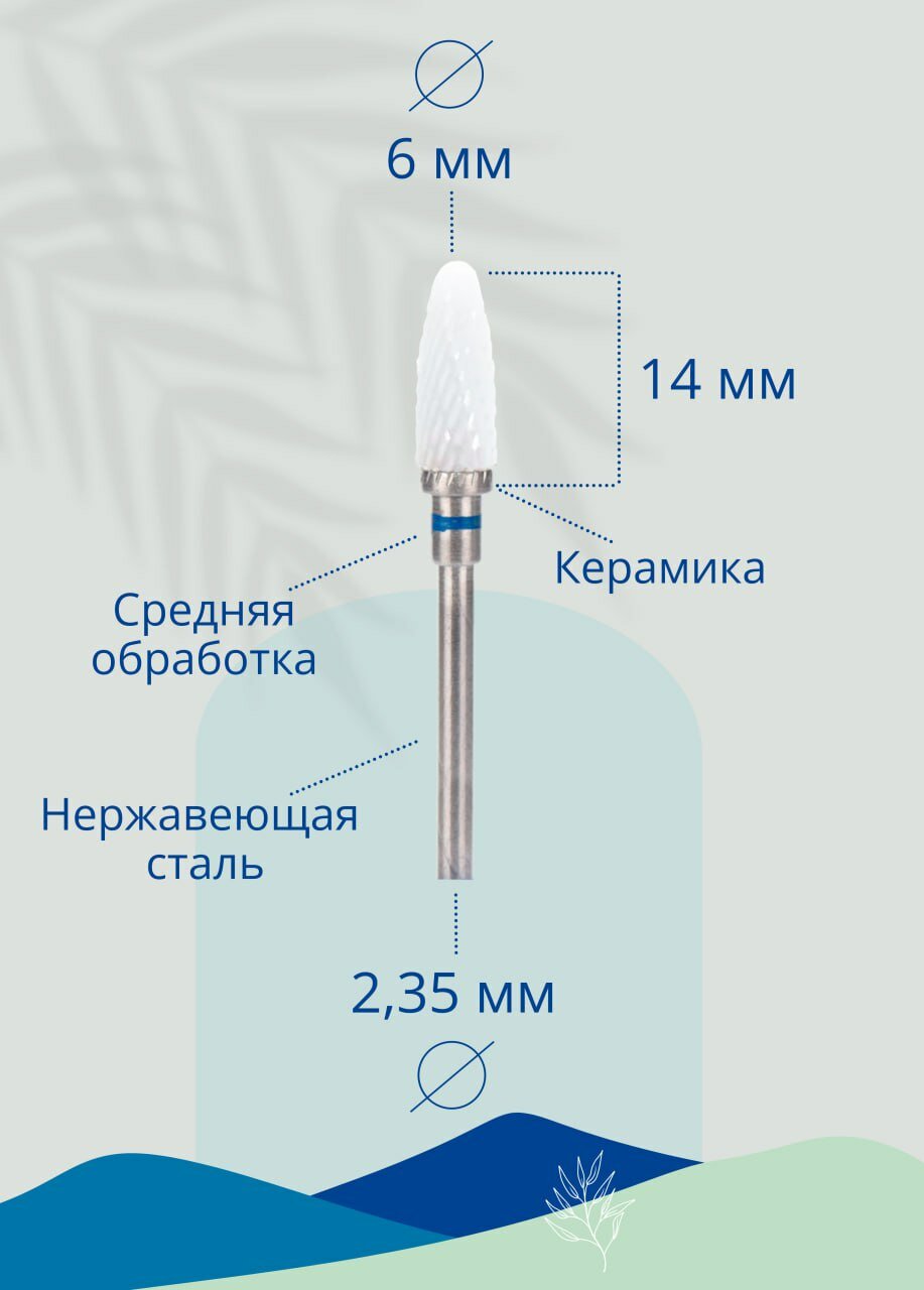 Фрезы для маникюра и педикюра, Фреза керамическая для аппаратного маникюра и педикюра "Кукуруза", 2 шт, 6 мм. информация: