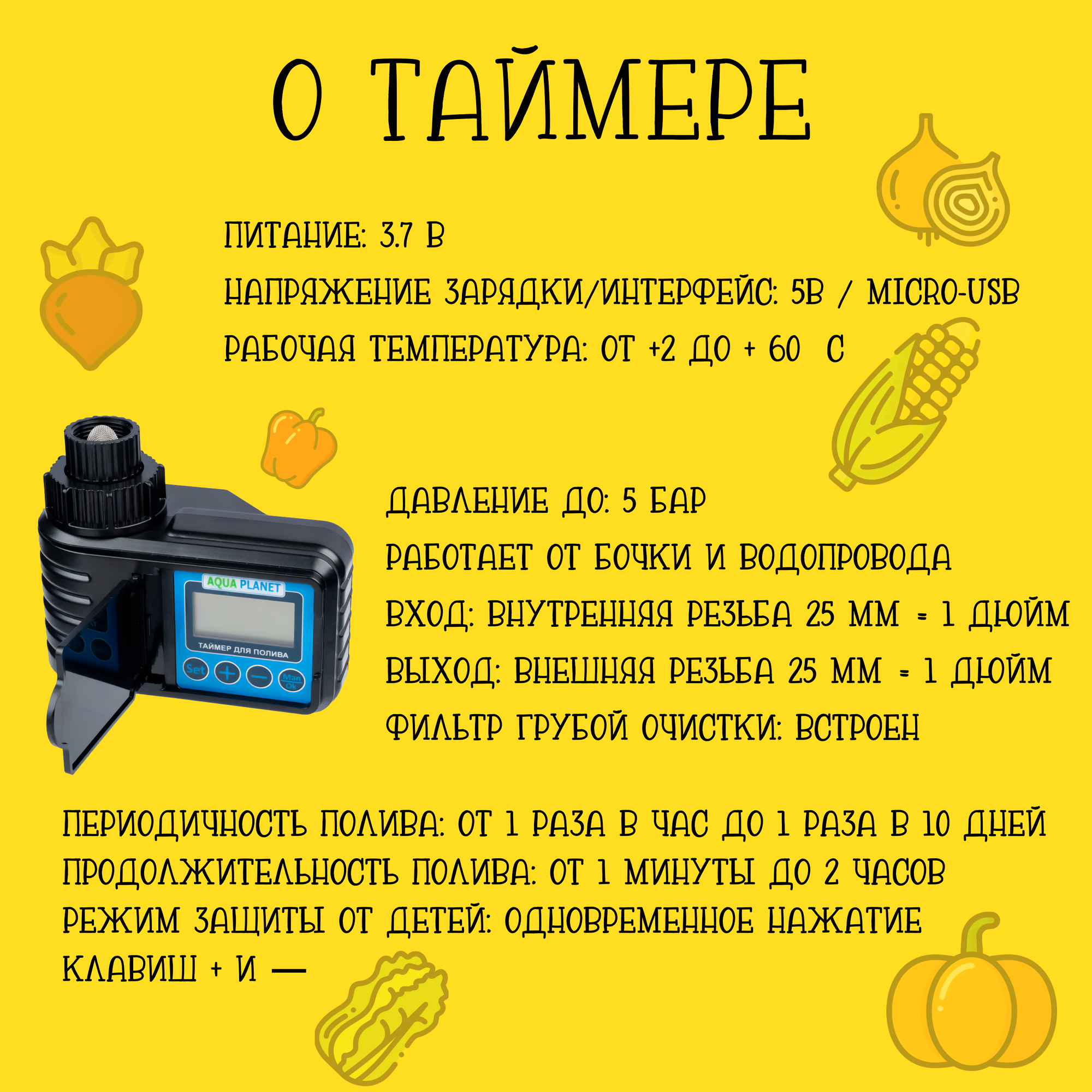 Отзывы на Таймер для полива с аккумулятором, для огорода, теплиц, Aqua Planet, Черный, 1 штука