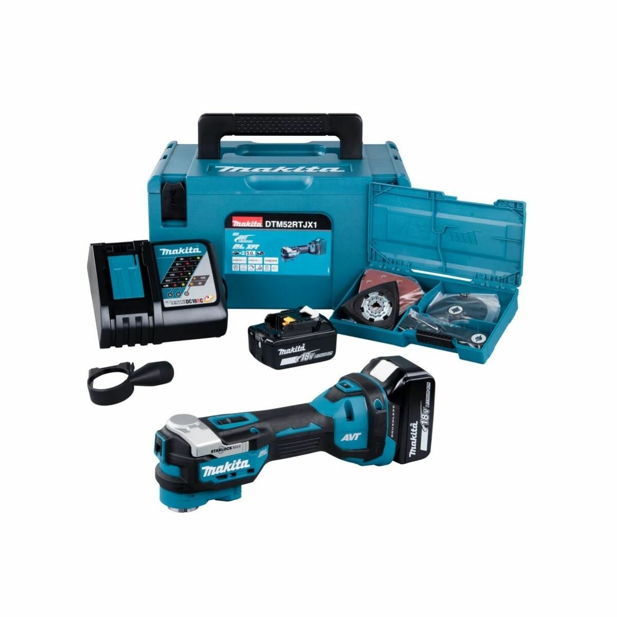 Аккумуляторный мультитул MAKITA DTM52RTJX1 LXT 18В, 10000-20000 об/мин.STARLOCK,XPT,AVT,BL, аккум.5.0х2 шт, быстрое з/у, с набором оснастки в кейсе