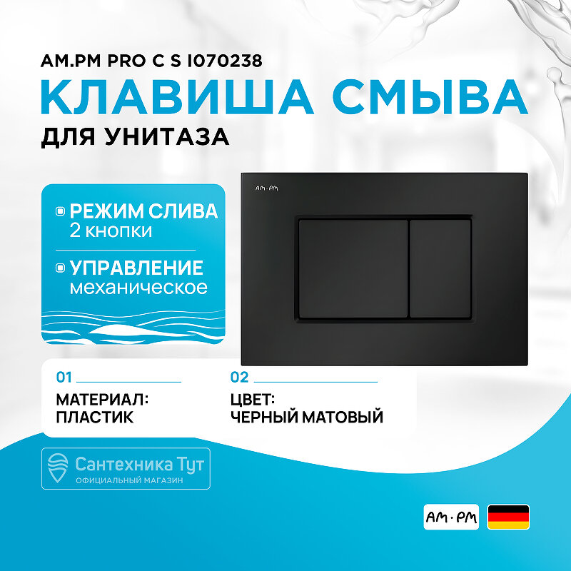 Клавиша для инсталляции AM.PM ProC S I070238 пластик, черный матовый 3 490 ₽