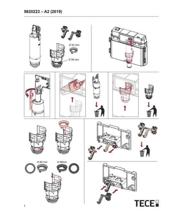 Клапан смыва, сливной клапан А2 в сборе для инсталляций TECE (9820223) информация: