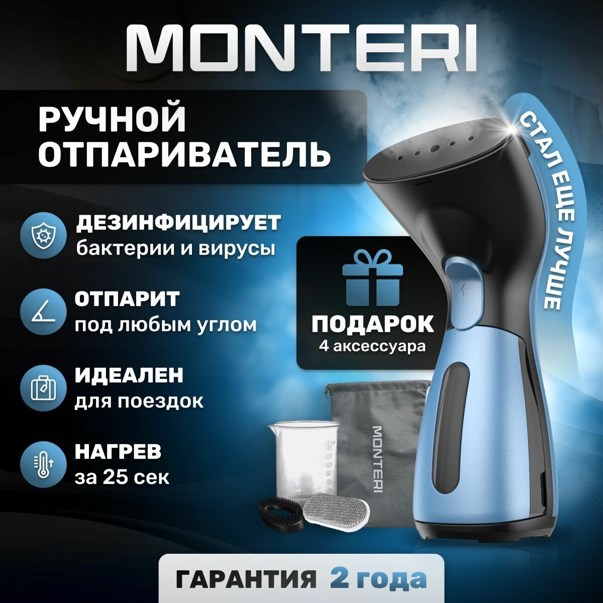 Отпариватель для одежды ручной мощный MONTERI Dampfer T10, вертикальный и горизонтальный, парогенератор для одежды, паровой утюг для дома информация:
