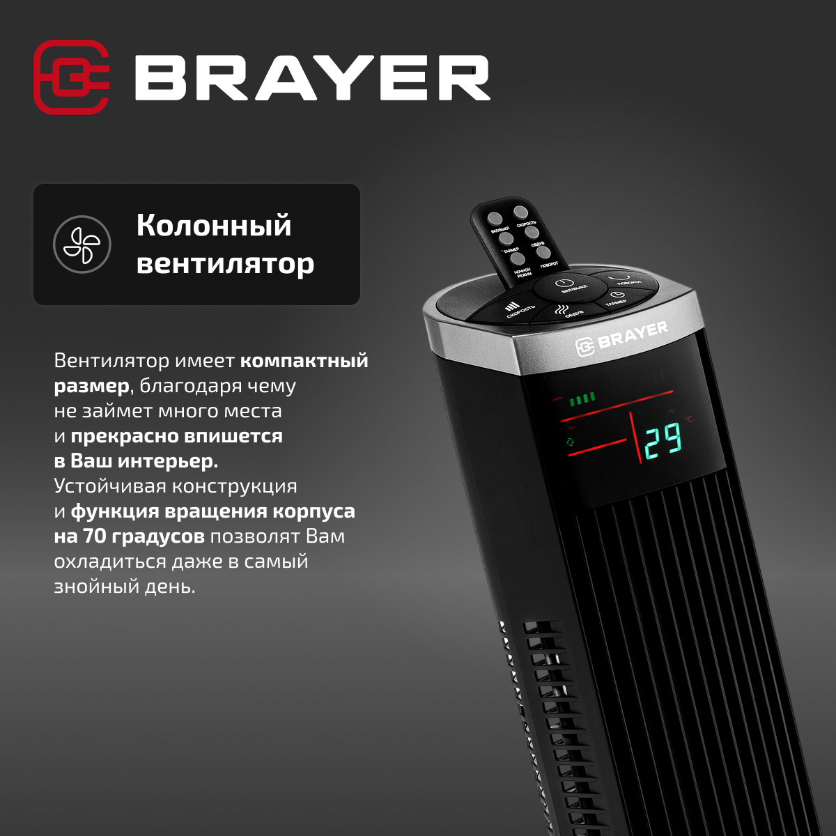 10 цен на Вентилятор напольный колонный BRAYER BR4975 3 скорости, пульт, дисплей, таймер, регулировка