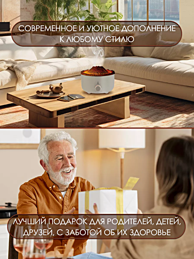 Отзывы на Увлажнитель воздуха Вулкан, Аромадиффузор с имитацией пламени, Увлажнитель воздуха ночник настольный с подсветкой, 560мл, Белый