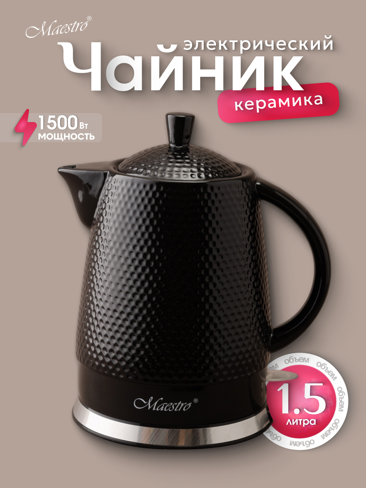 Чайник электрический Maestro MR-069, керамический, 1.5л, чёрный информация: