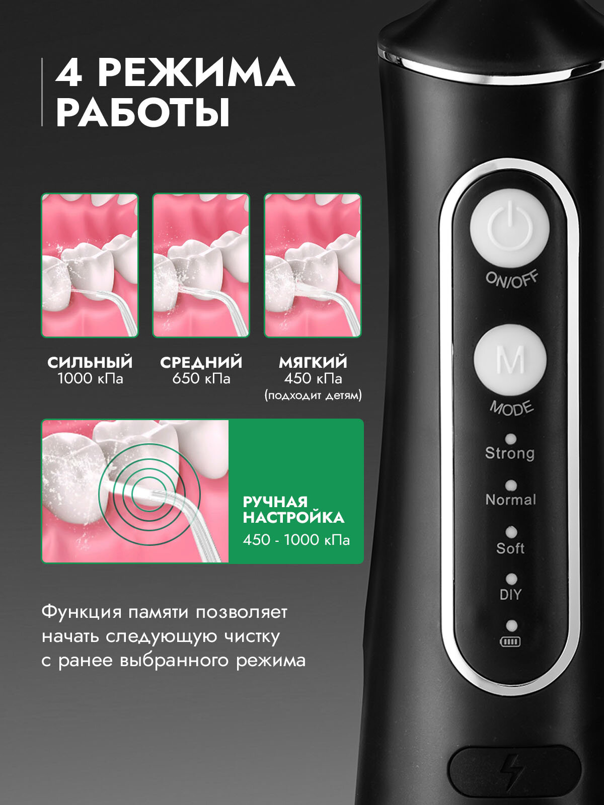 Ирригатор для полости рта портативный/для зубов,6 сменных насадок, 3 режимов для чистки зубов и брекетов языка