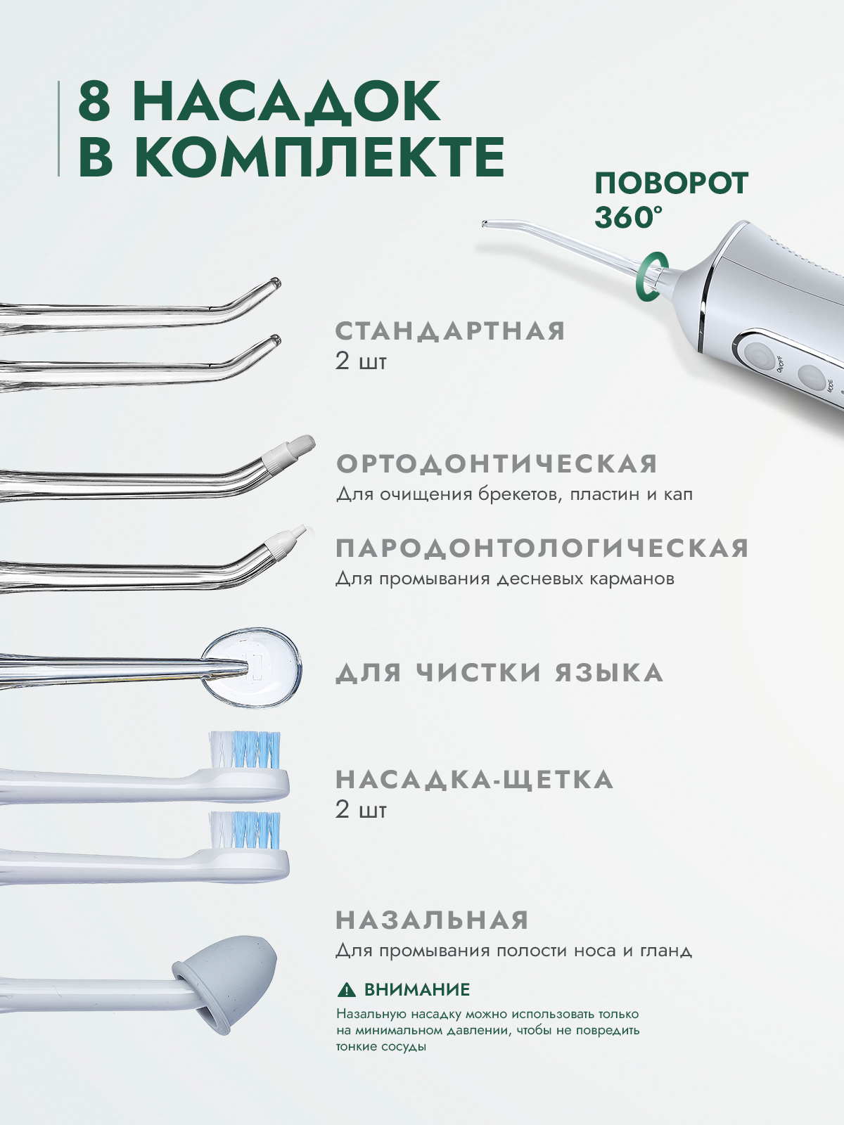 Насадки для ирригатора портативного AsiaCare PRO+, 7 насадок