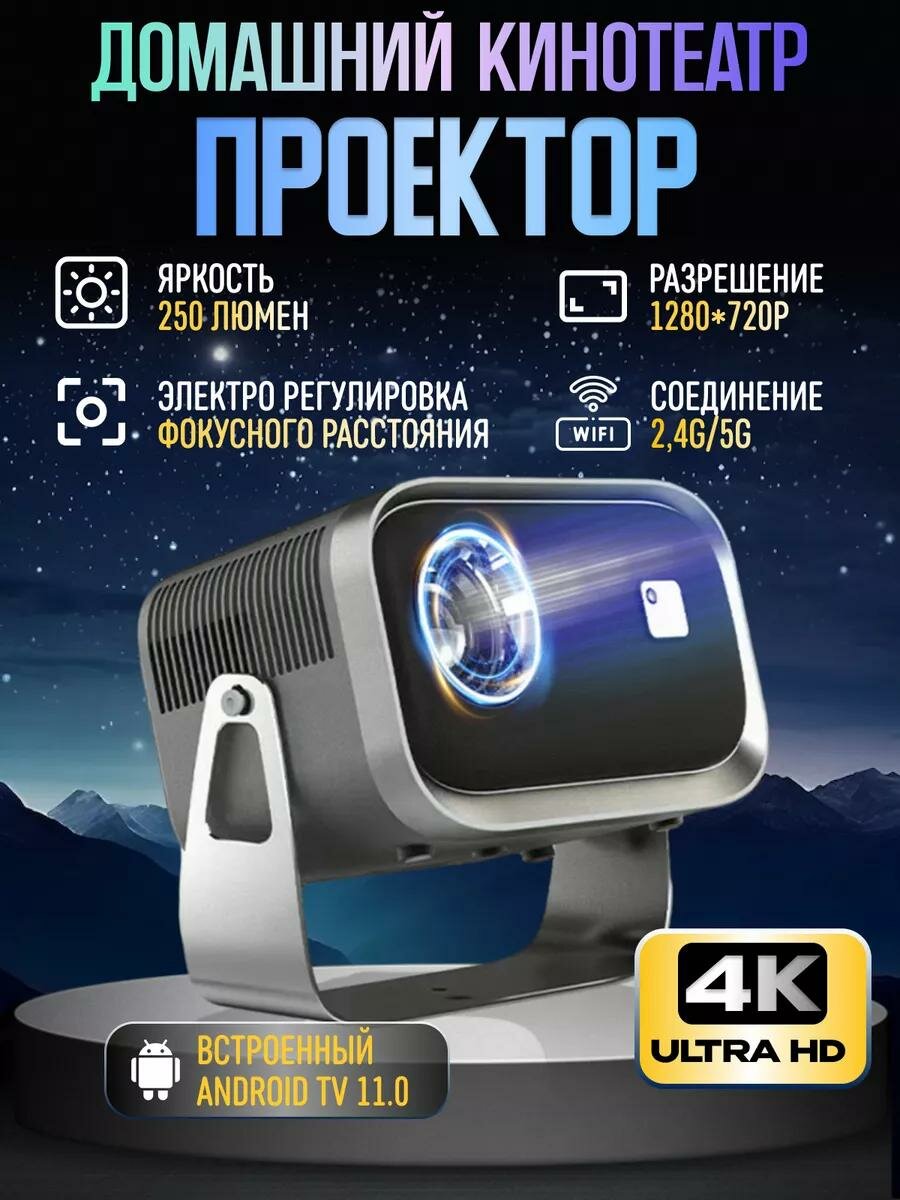 Проектор X8 PRO HD 720p с Android TV, Портативный Smart-проектор с Wi-Fi 5G, HDMI, Серый 10 880 ₽