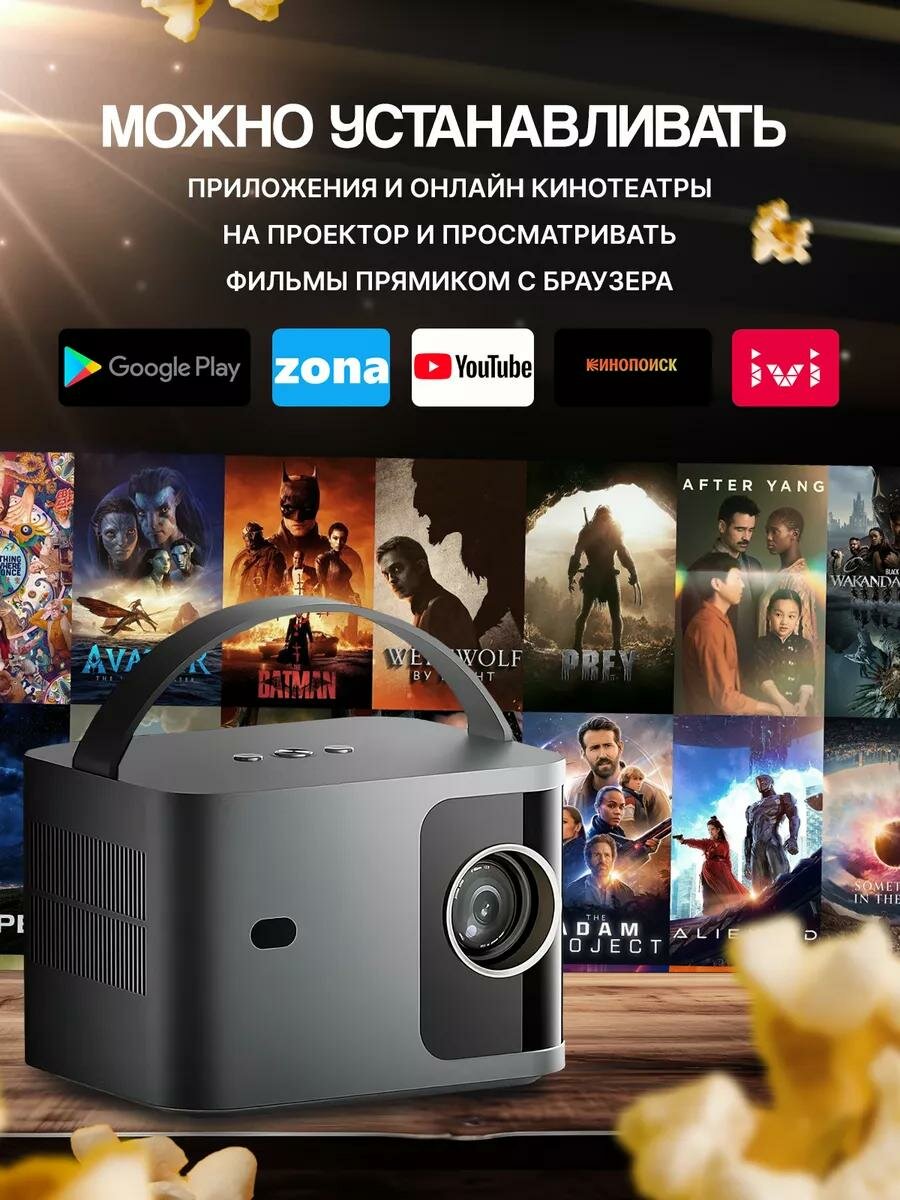 Проектор A008 – домашний кинотеатр, Smart TV, Wi-Fi, Full HD, LED, для фильмов, видео, игр, Черный 8 615 ₽