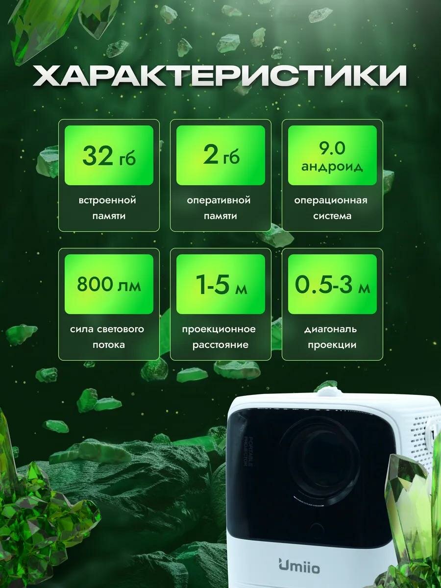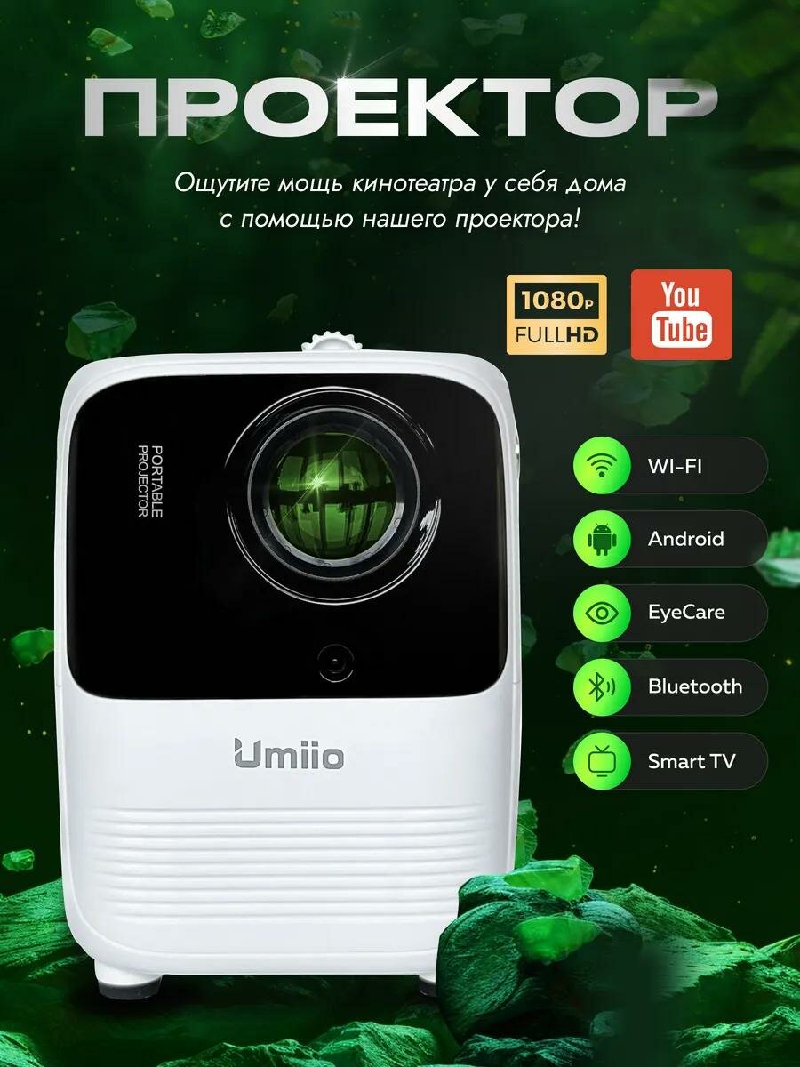 Проектор Umiio U8 PRO Full HD 1080p Android TV, Портативный Smart-проектор с Wi-Fi 5G, HDMI, Белый 23 990 ₽