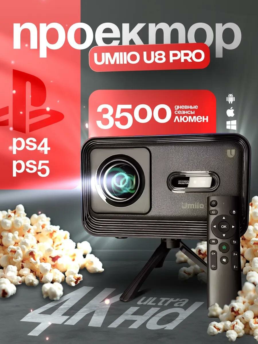Отзывы на Проектор Umiio U8 PRO Full HD 1080p Android TV, Портативный Smart-проектор с Wi-Fi 5G, HDMI, Черный