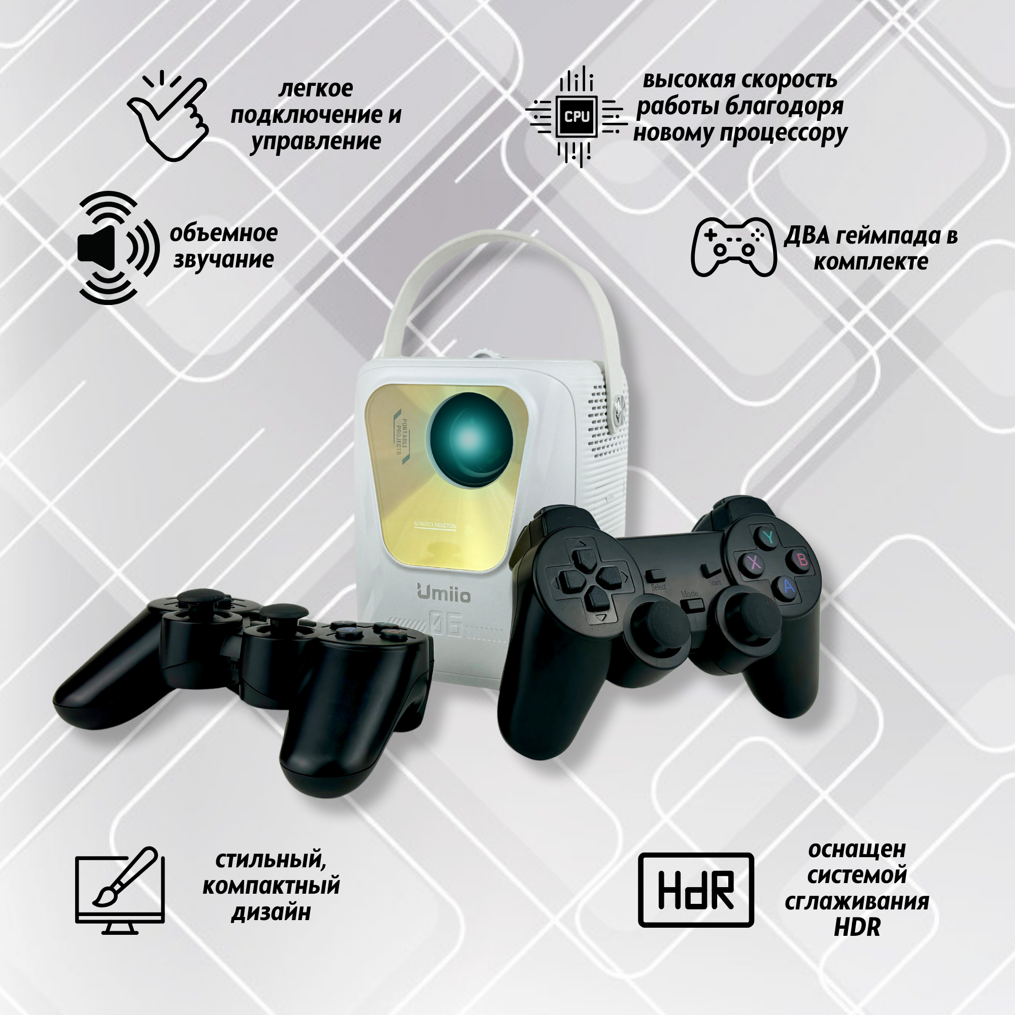 Игровой проектор Umiio "Q4 Pro", разрешение Full HD, беспроводной, с геймпадами, белый информация: