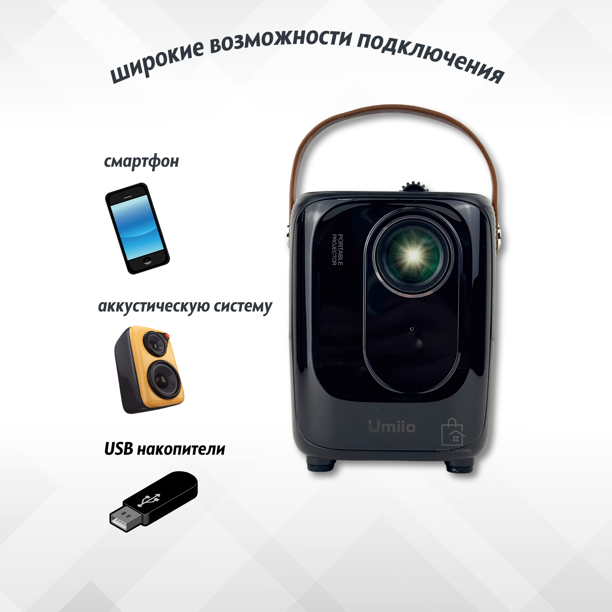 Проектор Umiio / Портативный проектор / Мини проектор Umiio / Full HD Android TV / Черный / Family Store Home