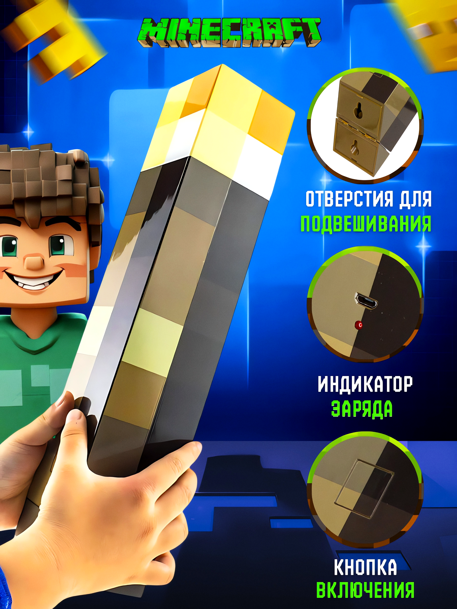 10 цен на Светильник ночник Minecraft - Факел Майнкрафт (28 см) желтый