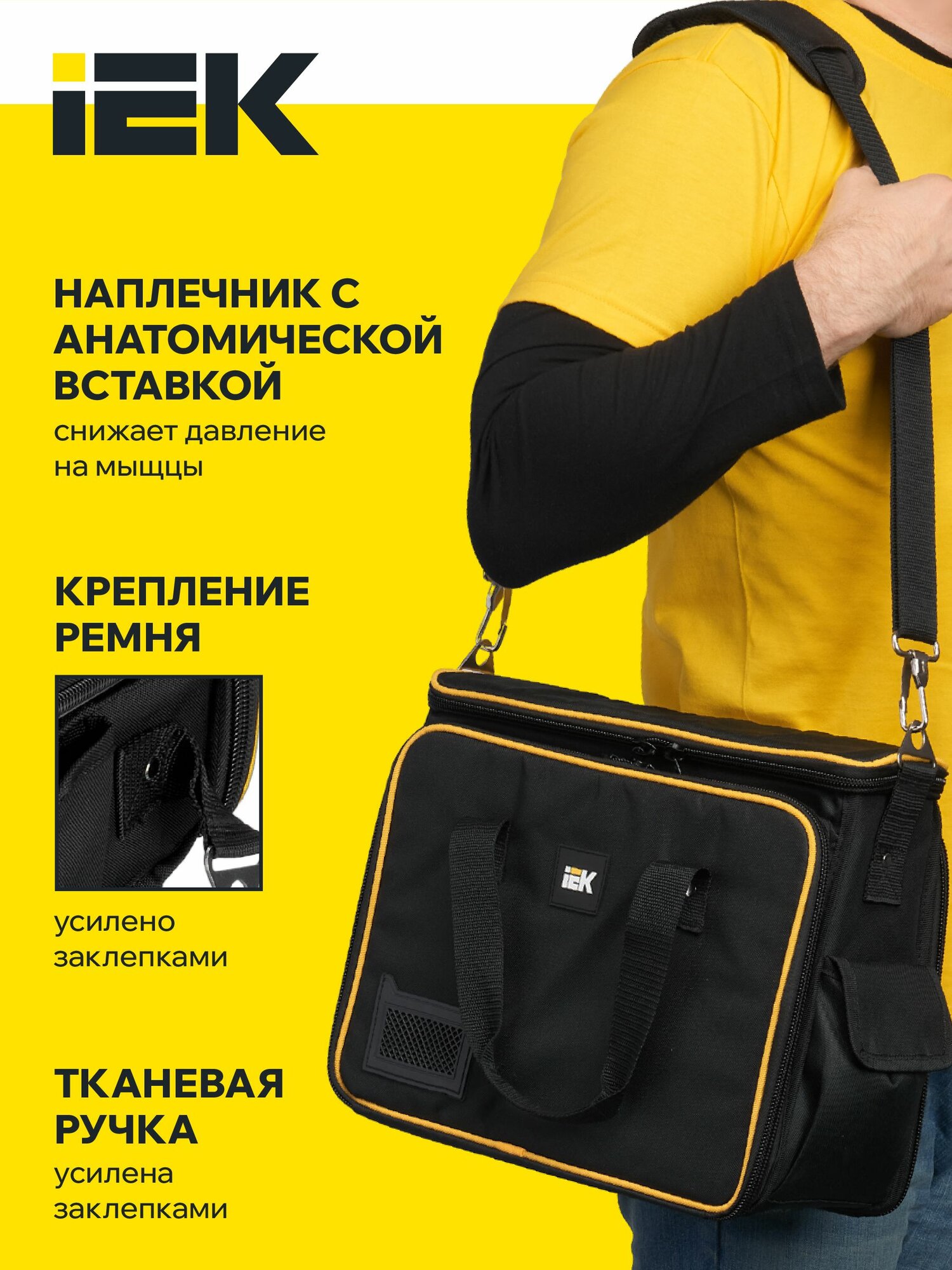 Отзывы на Сумка монтажника IEK ARMA2L BG-04, универсальный, 200x310x400мм, черная, с ремнем