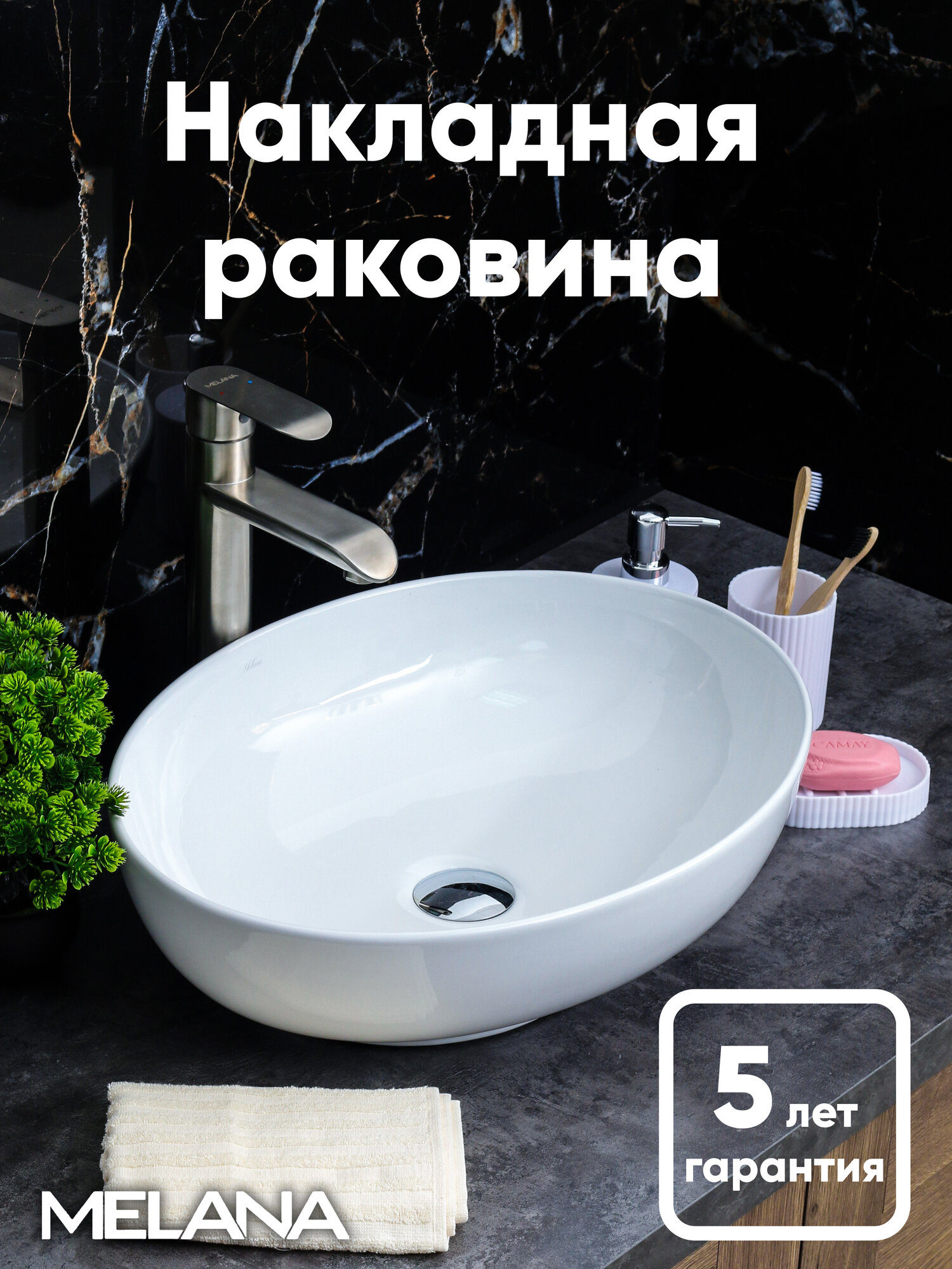 Отзывы на Раковина накладная MELANA MLN-320316, фаянс, белая, овальная, 52x39.5x13 см