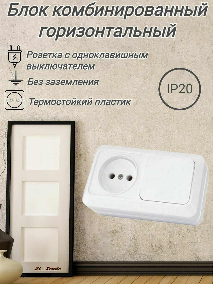 Отзывы на Розетка с выключателем блок комбинированный горизонтальный (130х65х35 мм, одноклавишный выключатель 10А + розетка 2П 10А, 250В, IP20, белый, Ладога)