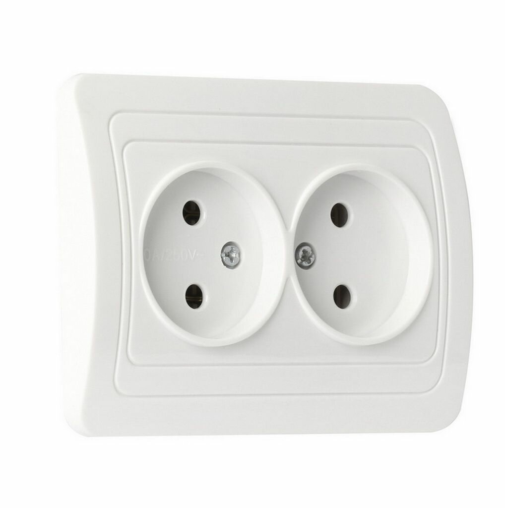 10 цен на Розетка Smartbuy 2-местная без заземления 10А, керамика "Марс", белый