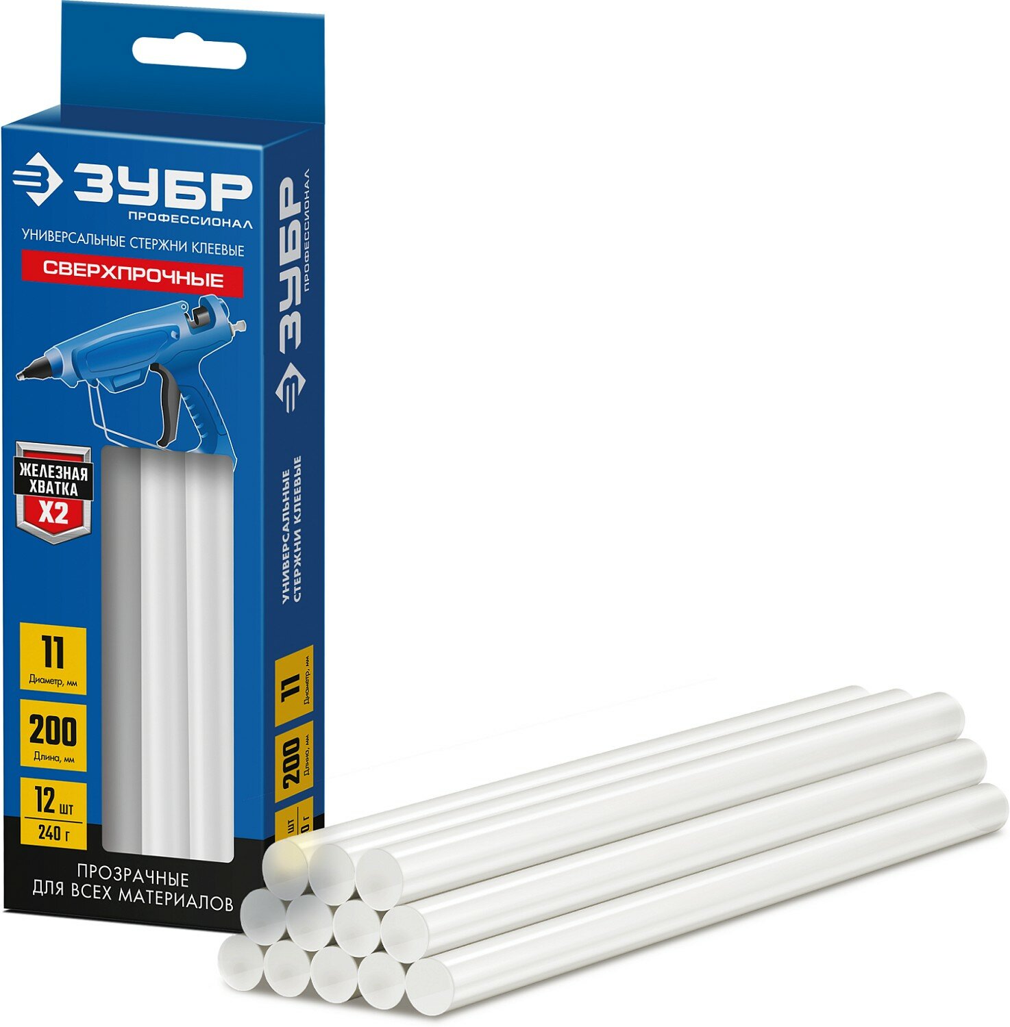 ЗУБР 11х200 мм, 12 шт, Сверхпрочные клеевые стержни прозрачные, Профессионал (06856-12)