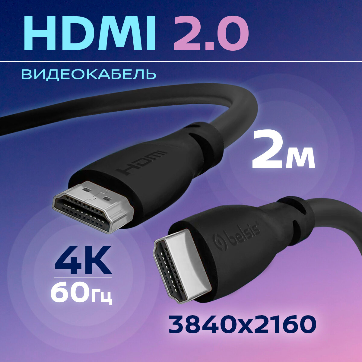 HDMI Кабель 2.0 4K 60 Гц , Belsis, 2 метра, вилка-вилка/BW1426 информация: