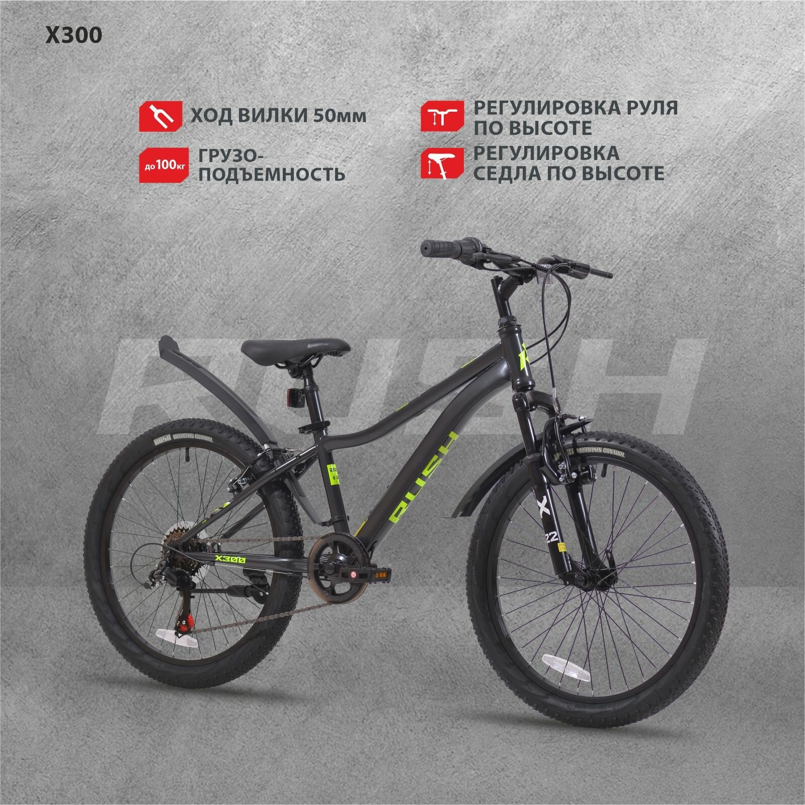 Велосипед детский горный 22" рост 125-140см 6 скоростей черный рама 12" велик 6 лет 7 лет 8 лет переключатель SHIMANO скоростной RUSH HOUR X 300 информация: