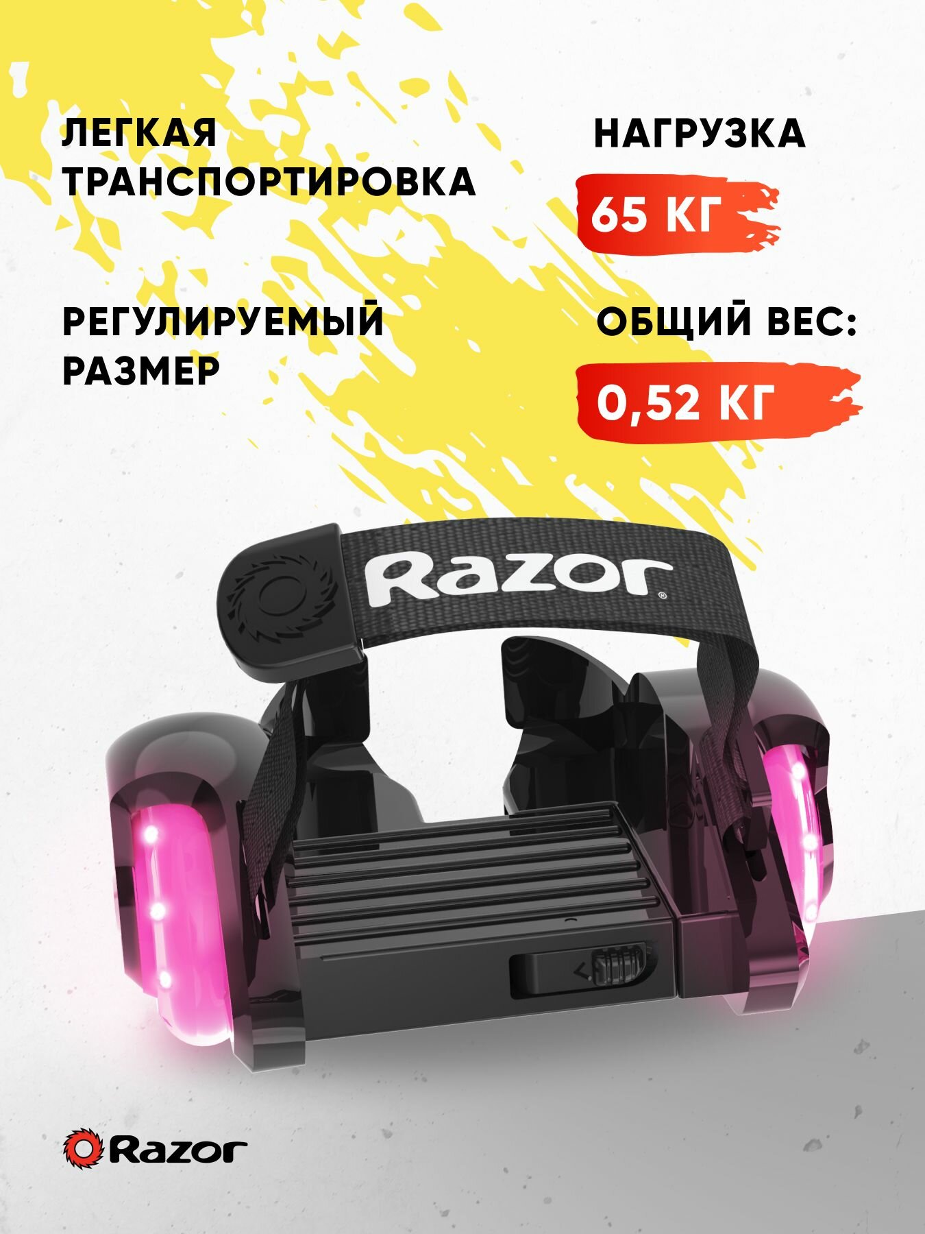 Ролики на обувь со светящимися колёсами Razor Jetts Mini - розовый информация: